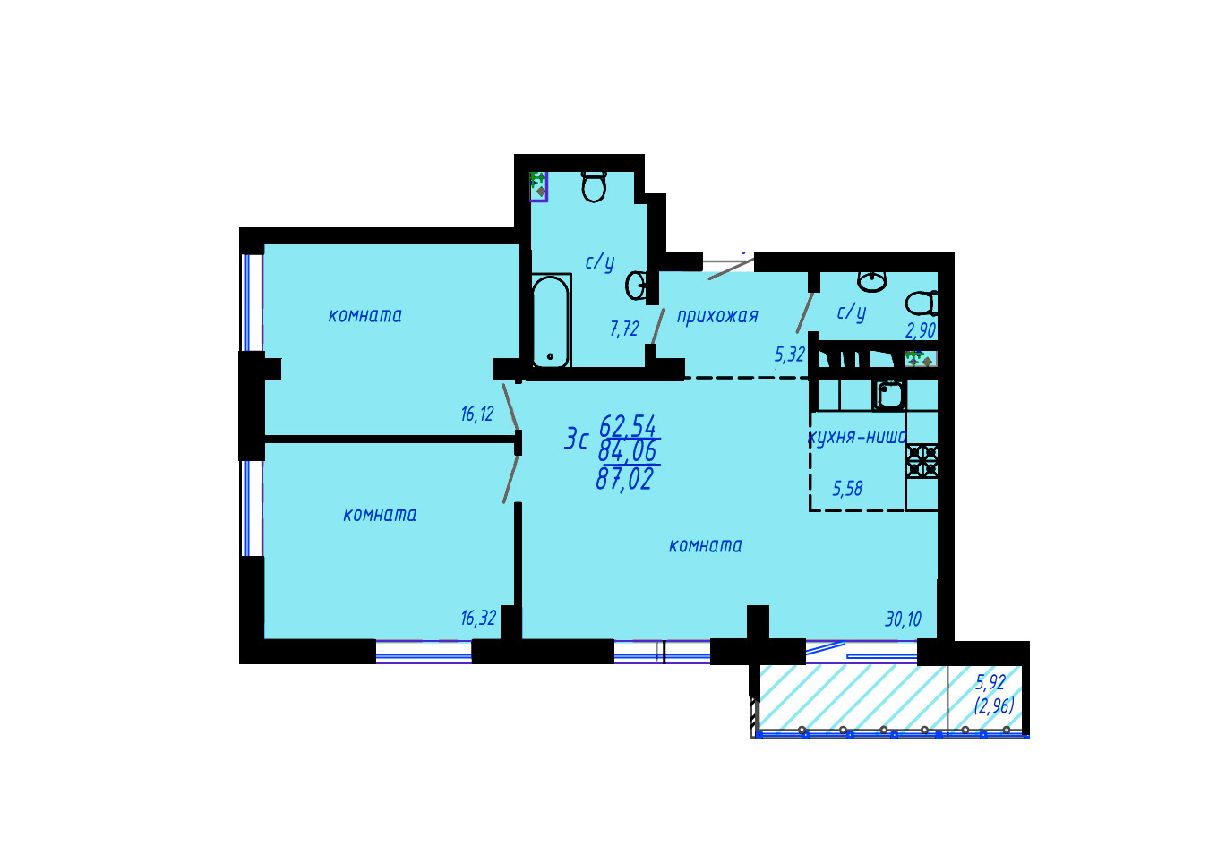 Общая площадь 84.06 м2