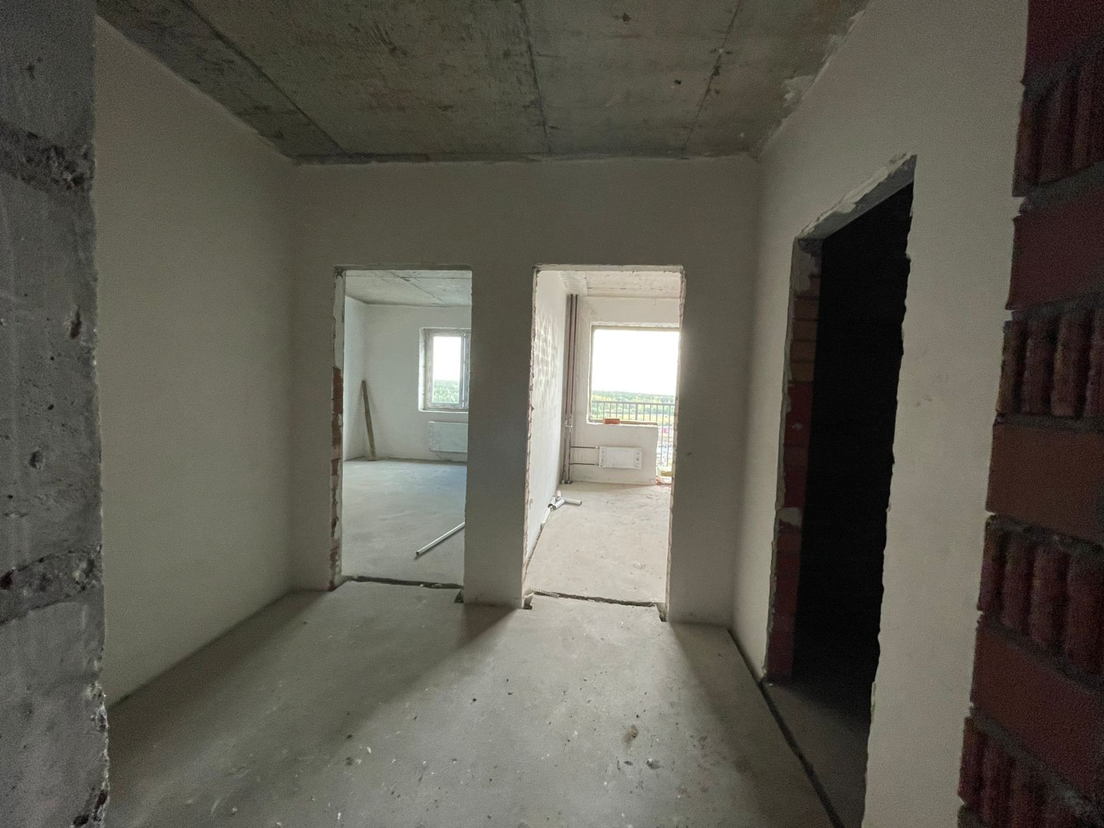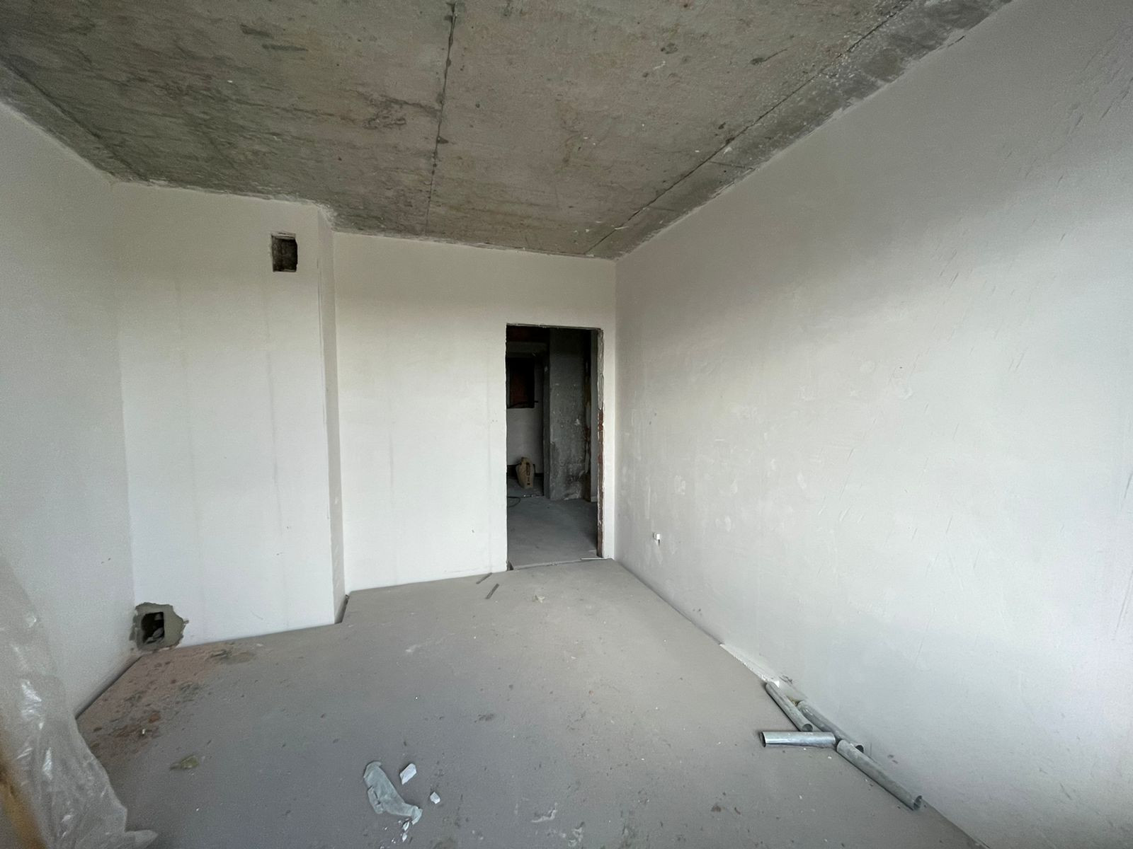 Квартира выполнена в предчистовом варианте, залит пол, стены оштукатурены, проводка заведена до щетка, установлены приборы учета воды и электричества; радиаторы.