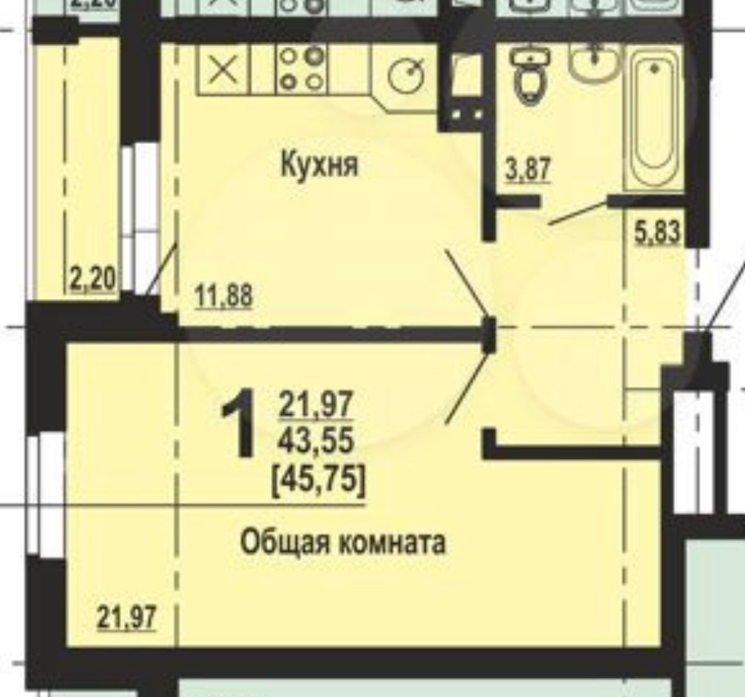 Общая площадь 45.75 м2