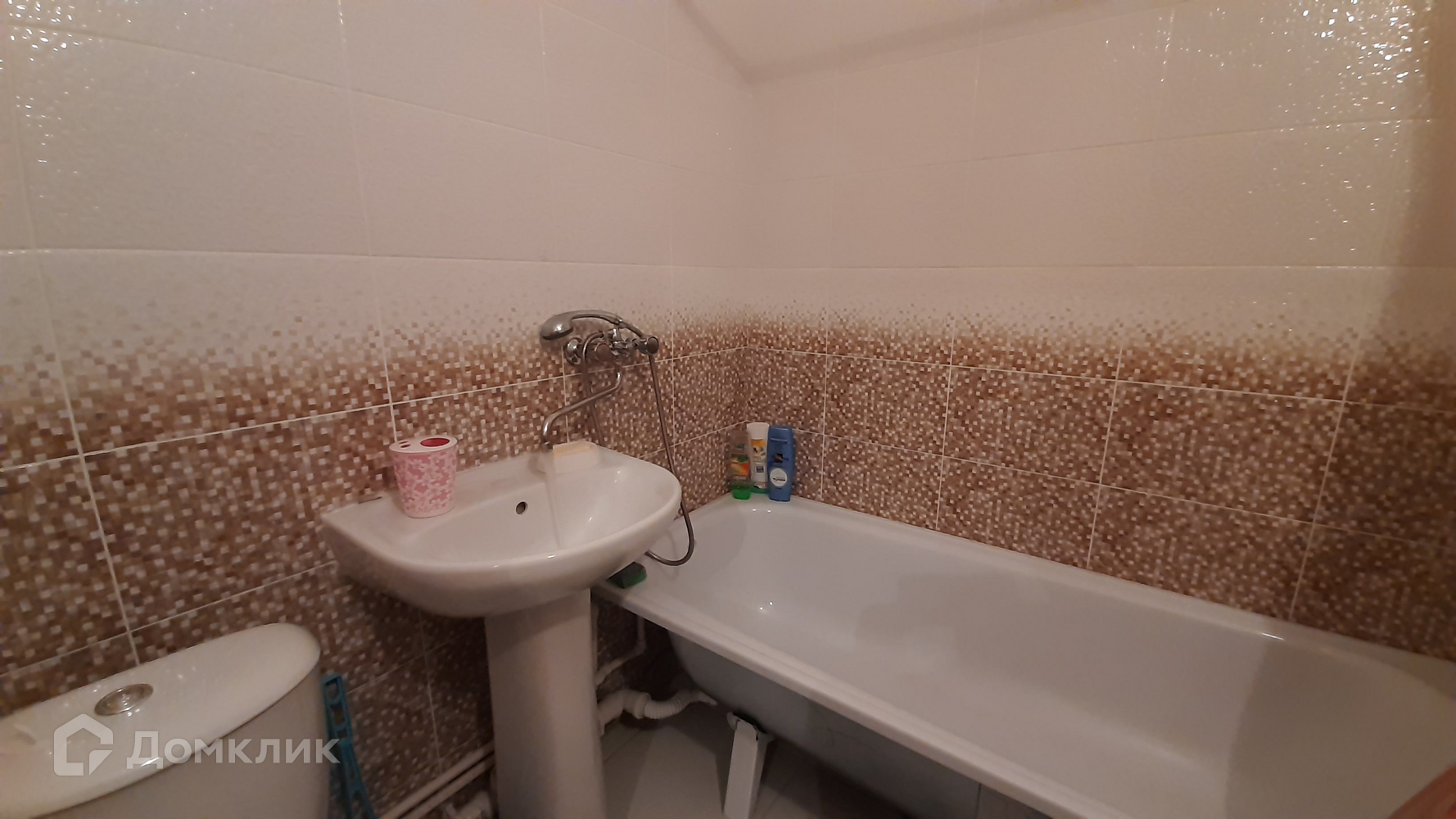 Сан. узел совмещенный, кафель. Установлена сантехника.