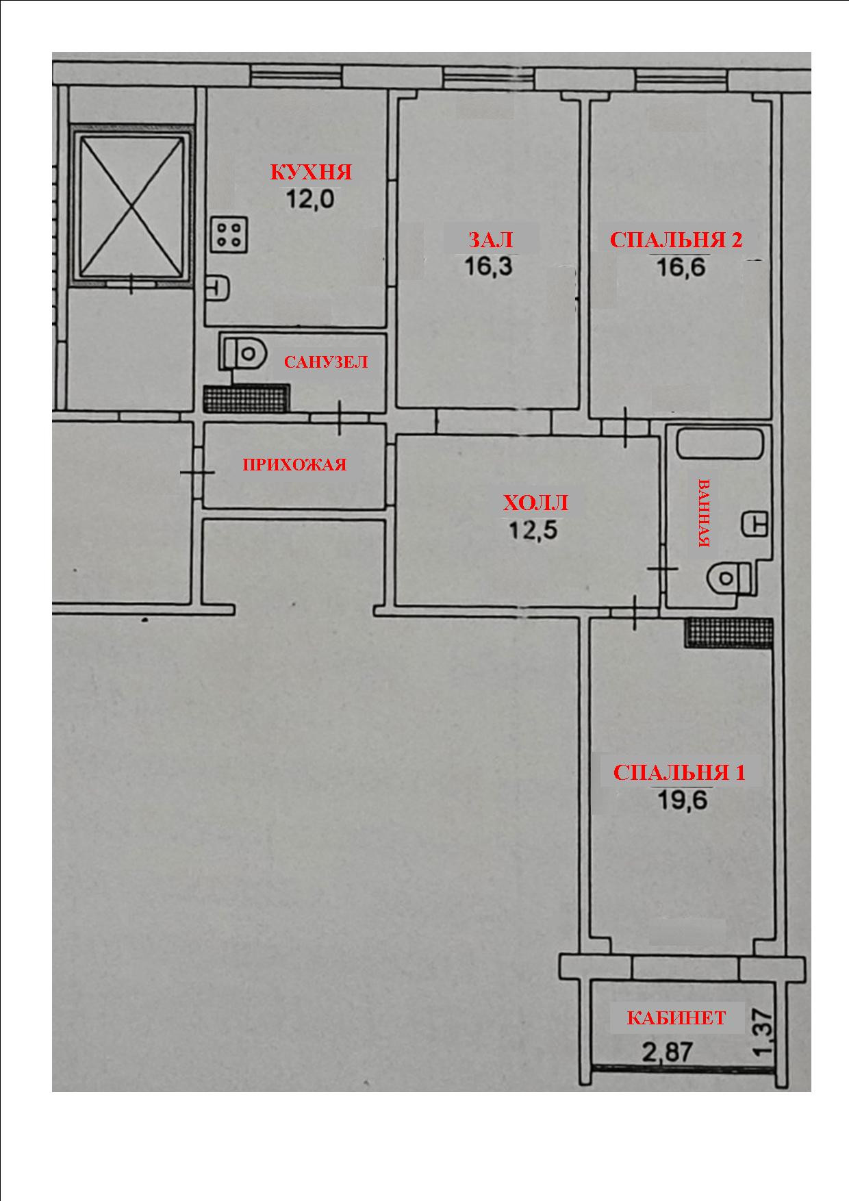 3 этаж 10-ти этажного дома, общая площадь 90 кв.м! Квартира не торцевая!