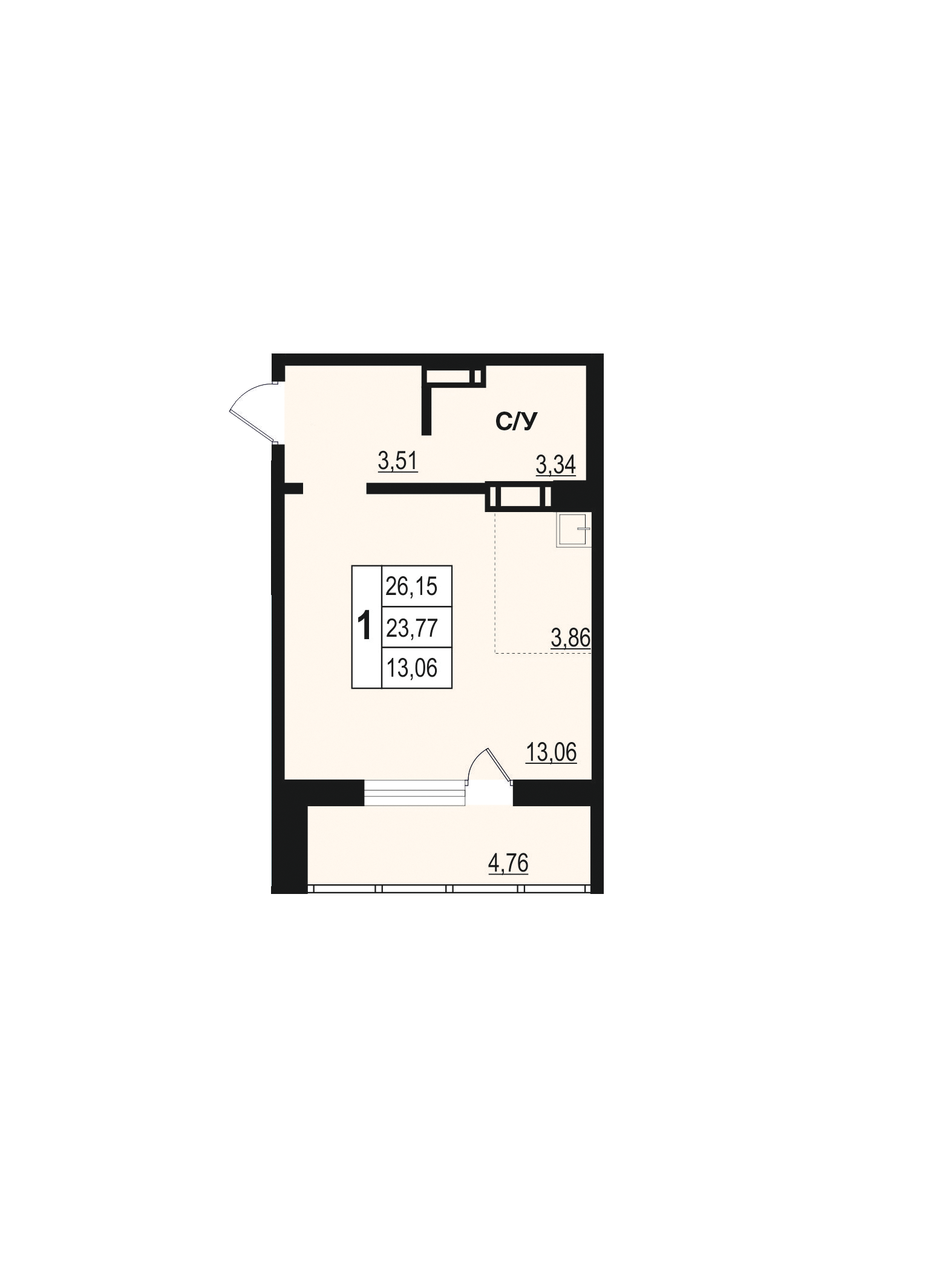Общая площадь 28 м2