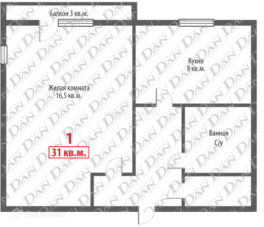 Общая площадь 31.1 м2