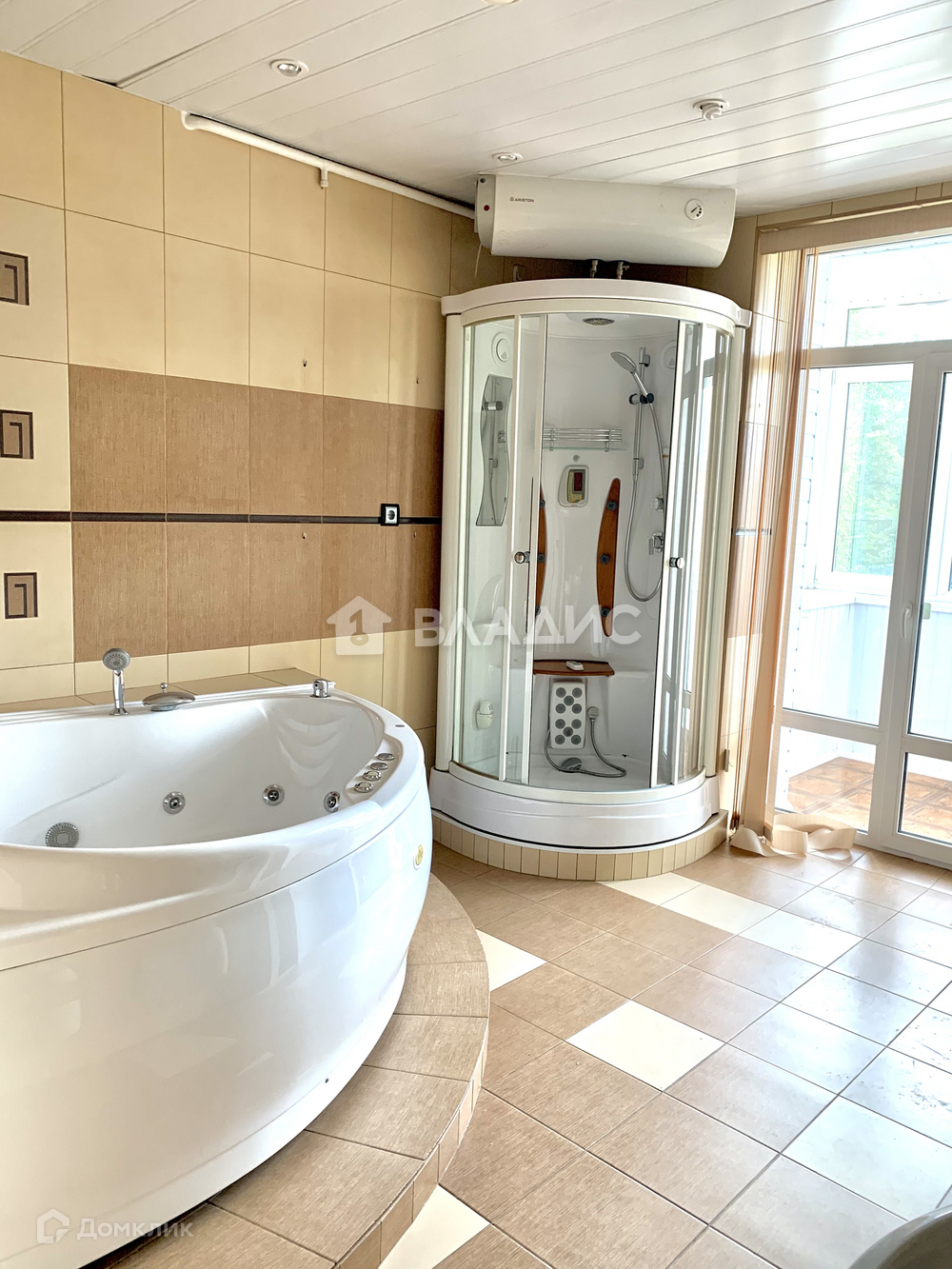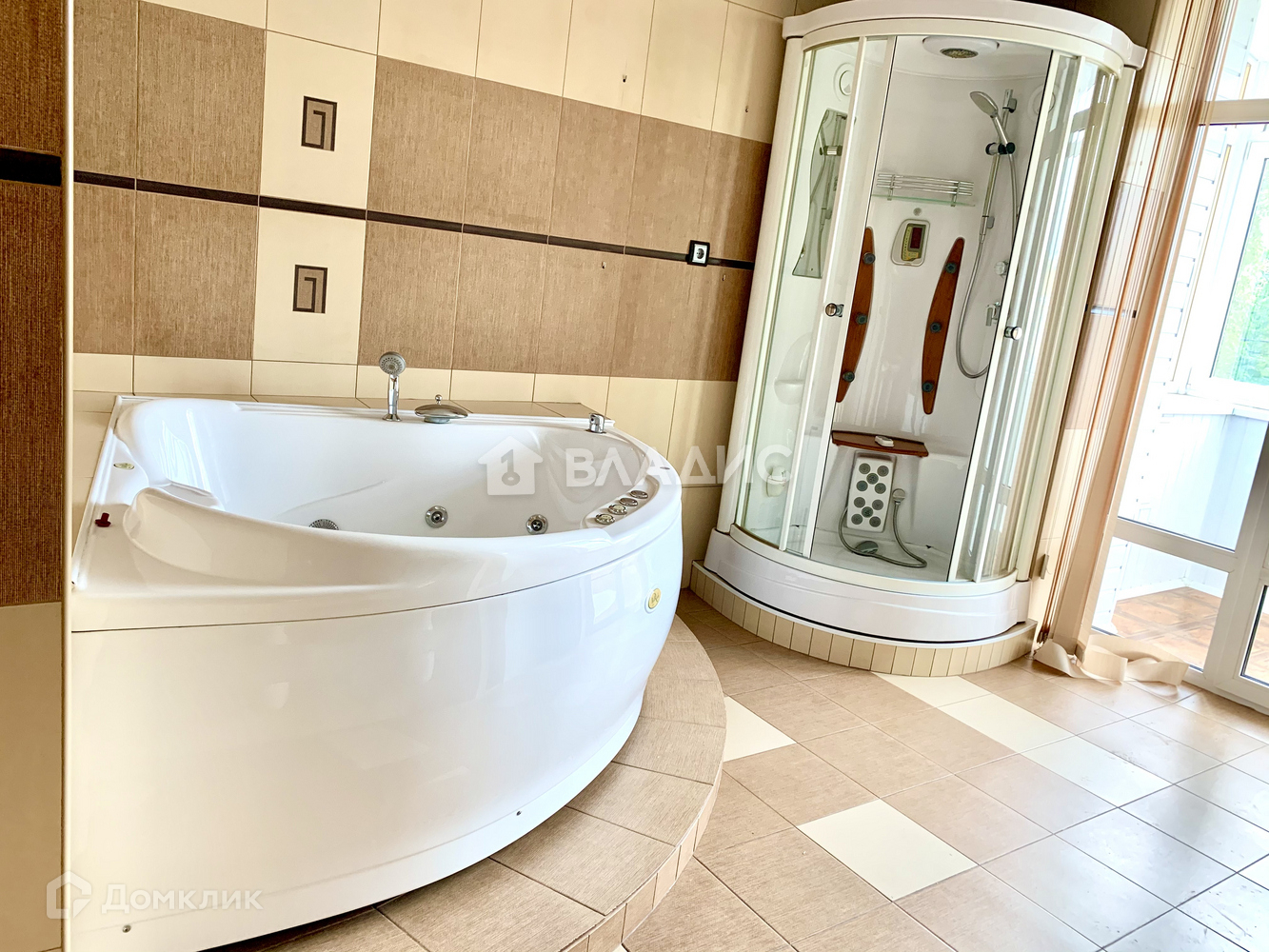 -большой санузел с джакузи, биде, душевой кабиной и двумя раковинами