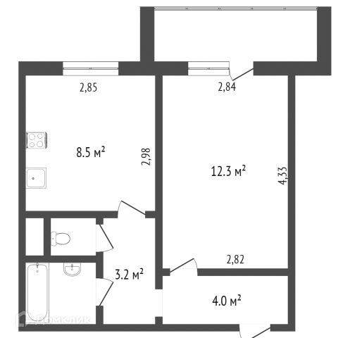 Общая площадь 42 м2