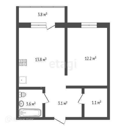 Общая площадь 33.8 м2