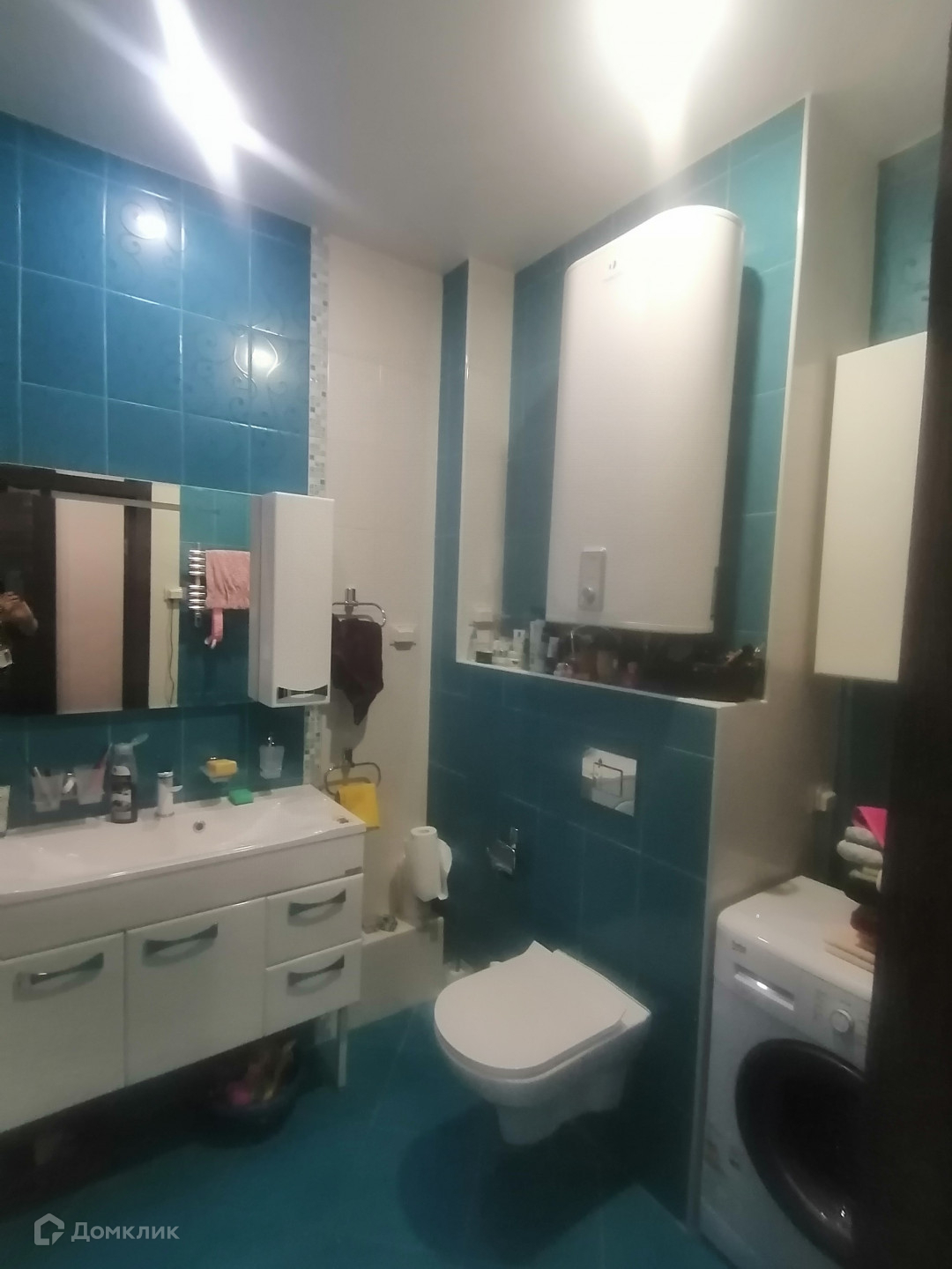 Просторная ванная комната с современным, итальянским кафелем и новой сантехникой.              В ПОДАРОК остается дизайнерский шкаф-купе в прихожей, водонагреватель и мебель в ванной комнате.