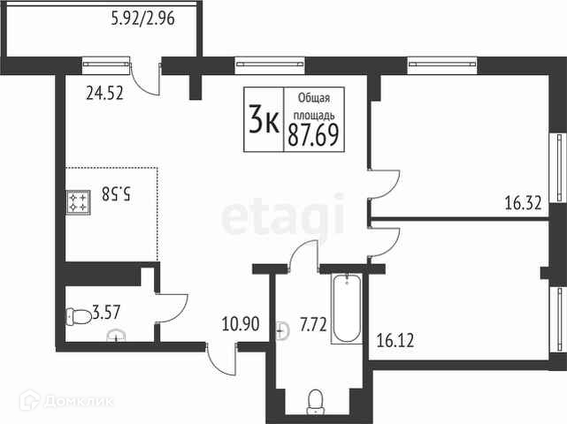 Общая площадь 90.77 м2