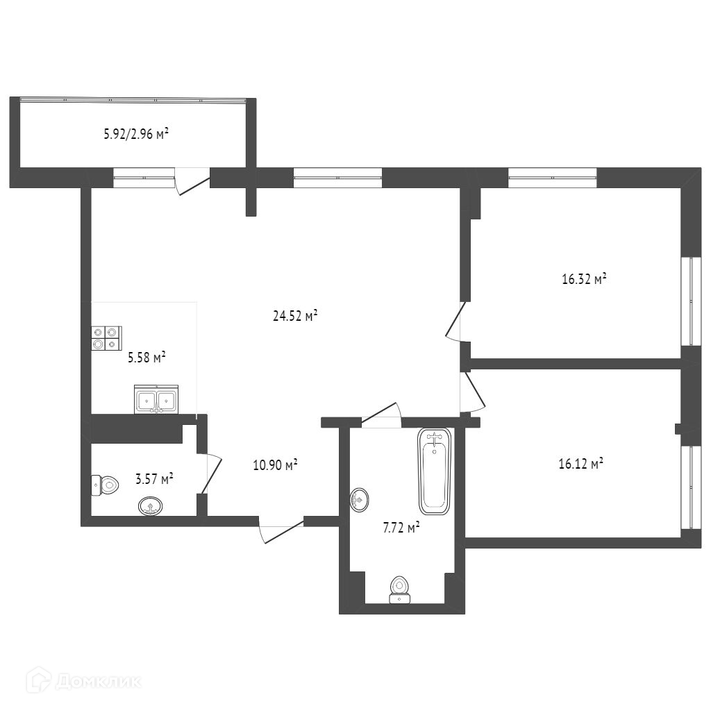 Выполнена предчистовая отделка. Есть возможность сделать индивидуальную планировку, перенести кухню, увеличить площадь спален.