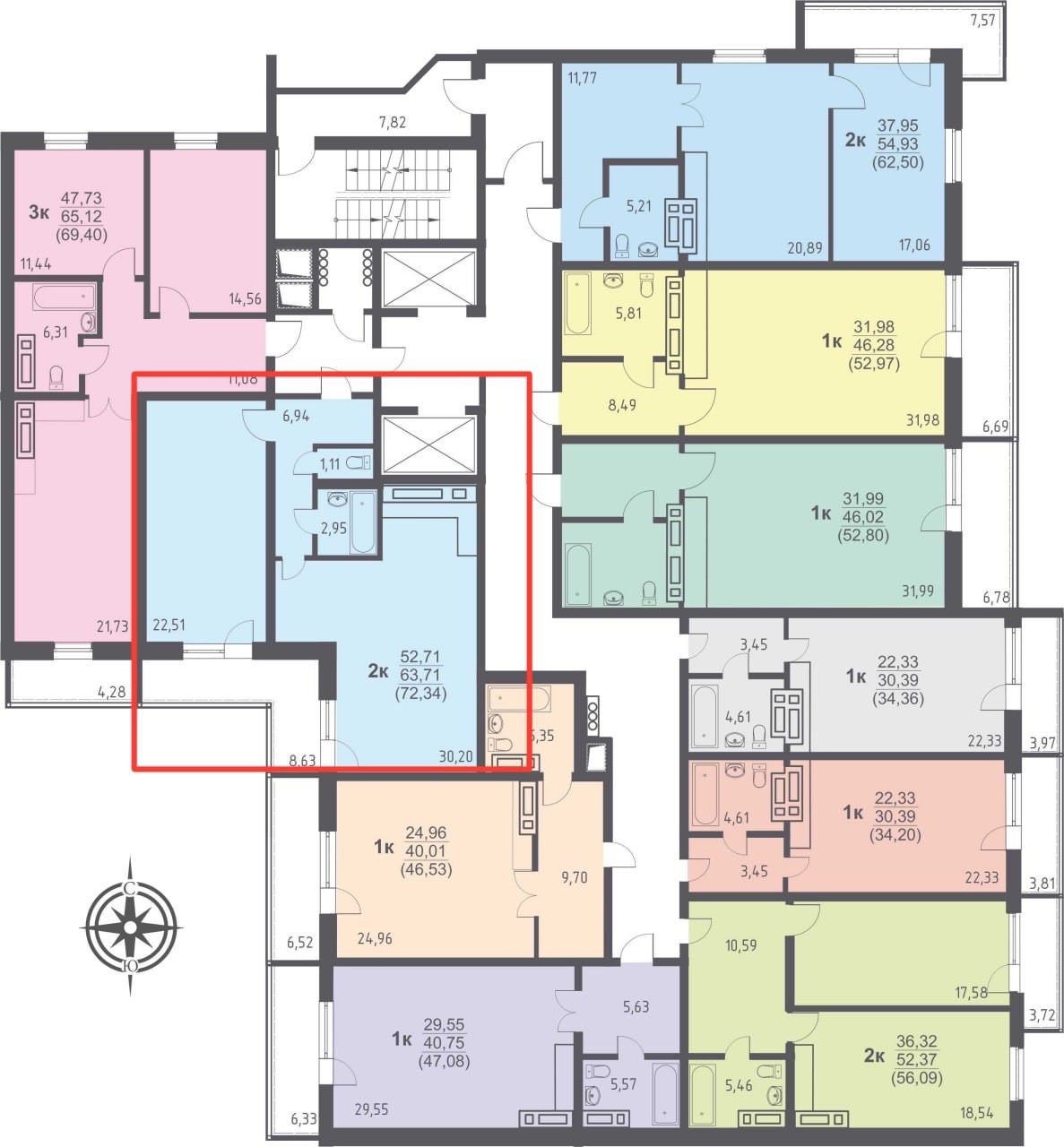 Общая площадь 72.3 м2
