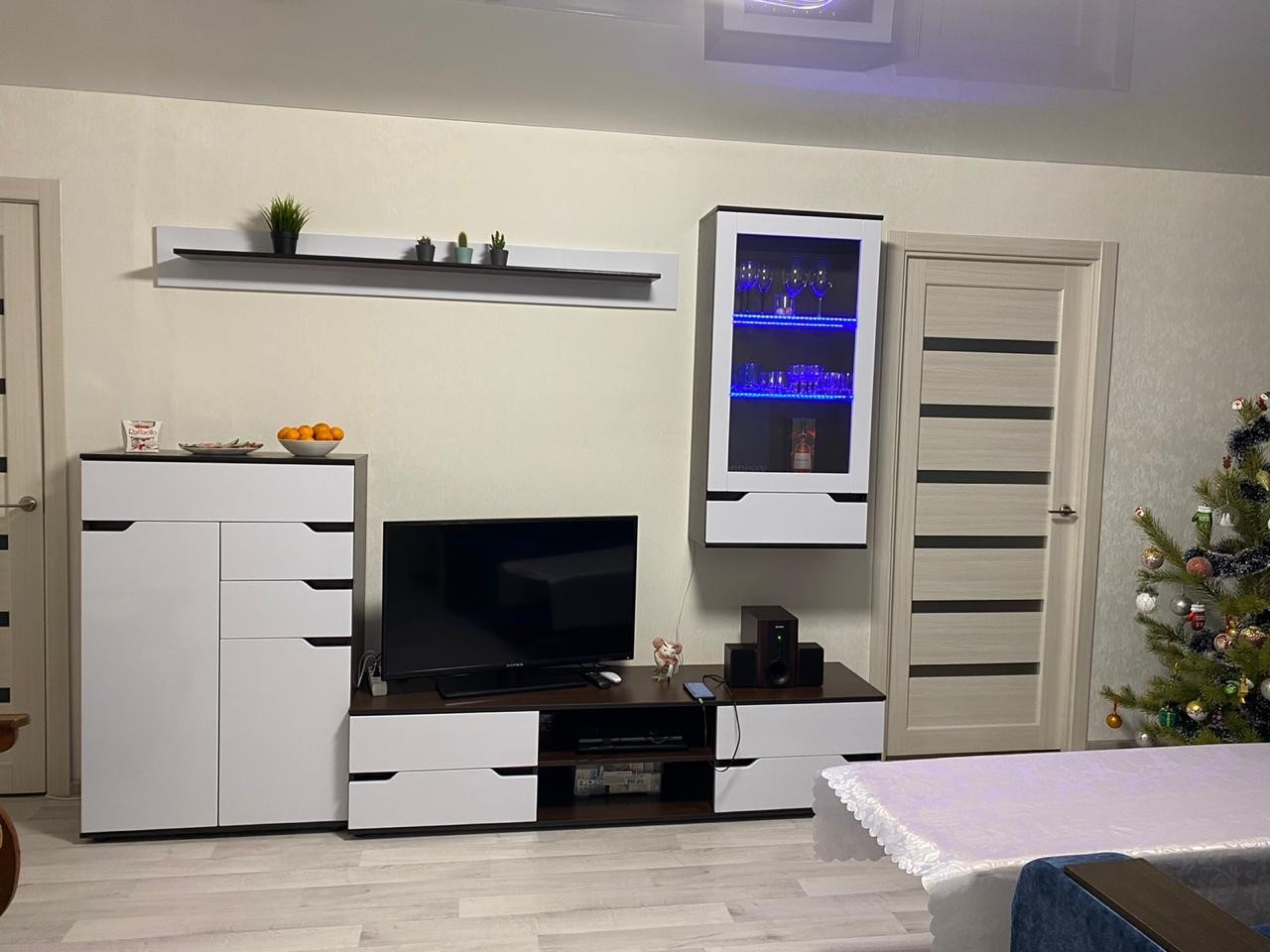 В квартире сделан косметический ремонт в гостиной и гардеробной, установлены межкомнатные двери во всей квартире.