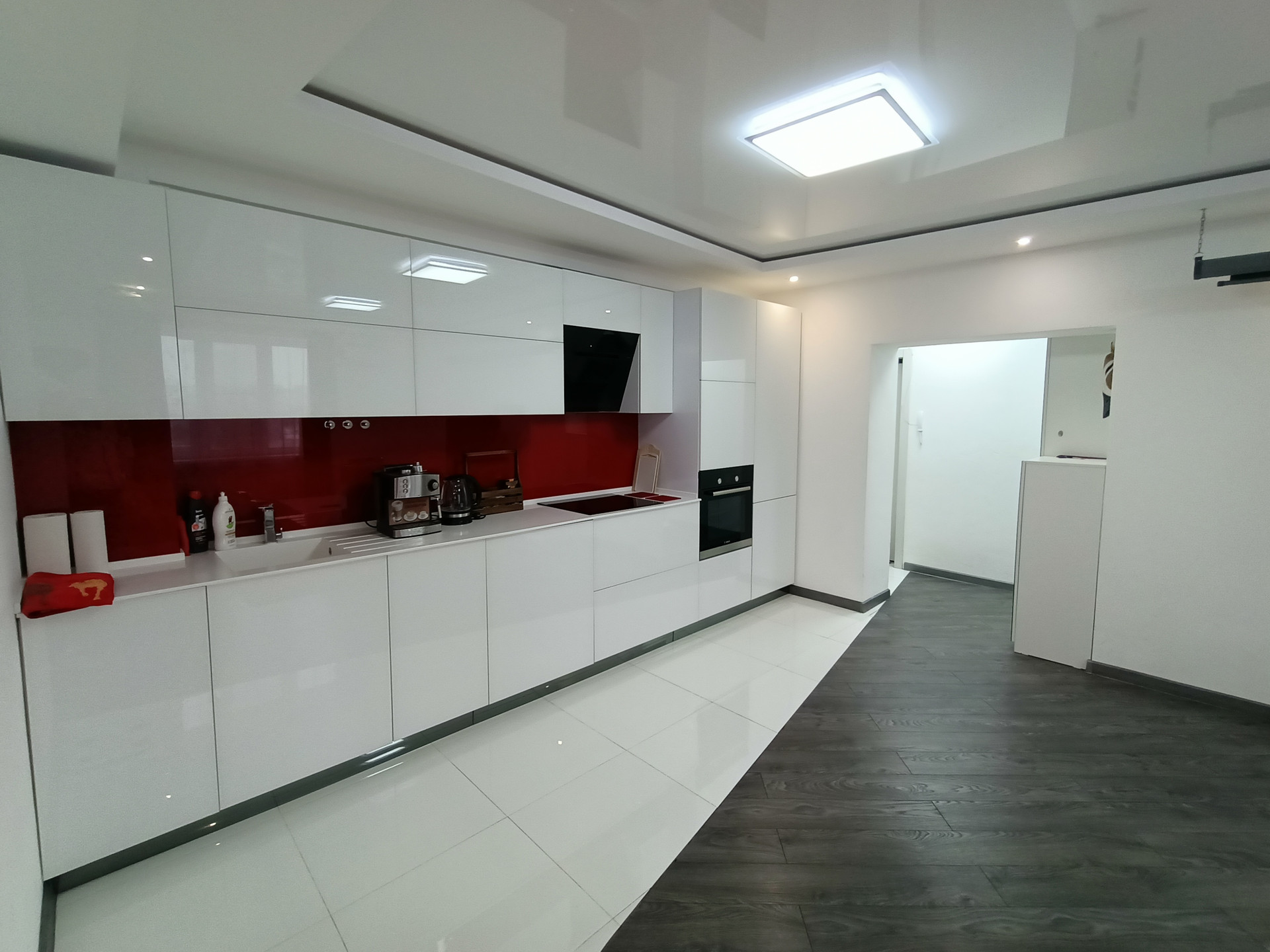Кухонный гарнитур стеклянный с сервоприводами Blum.