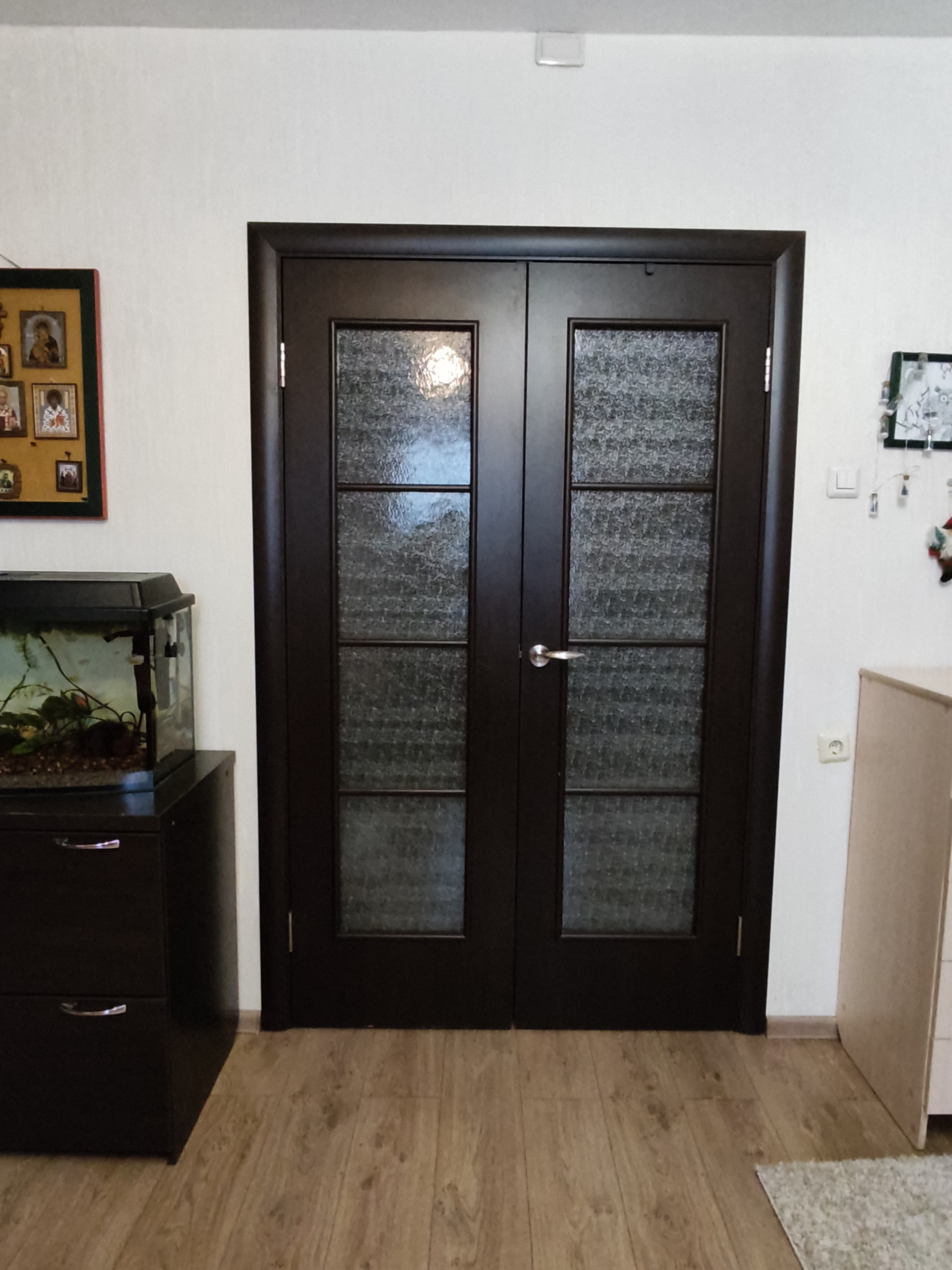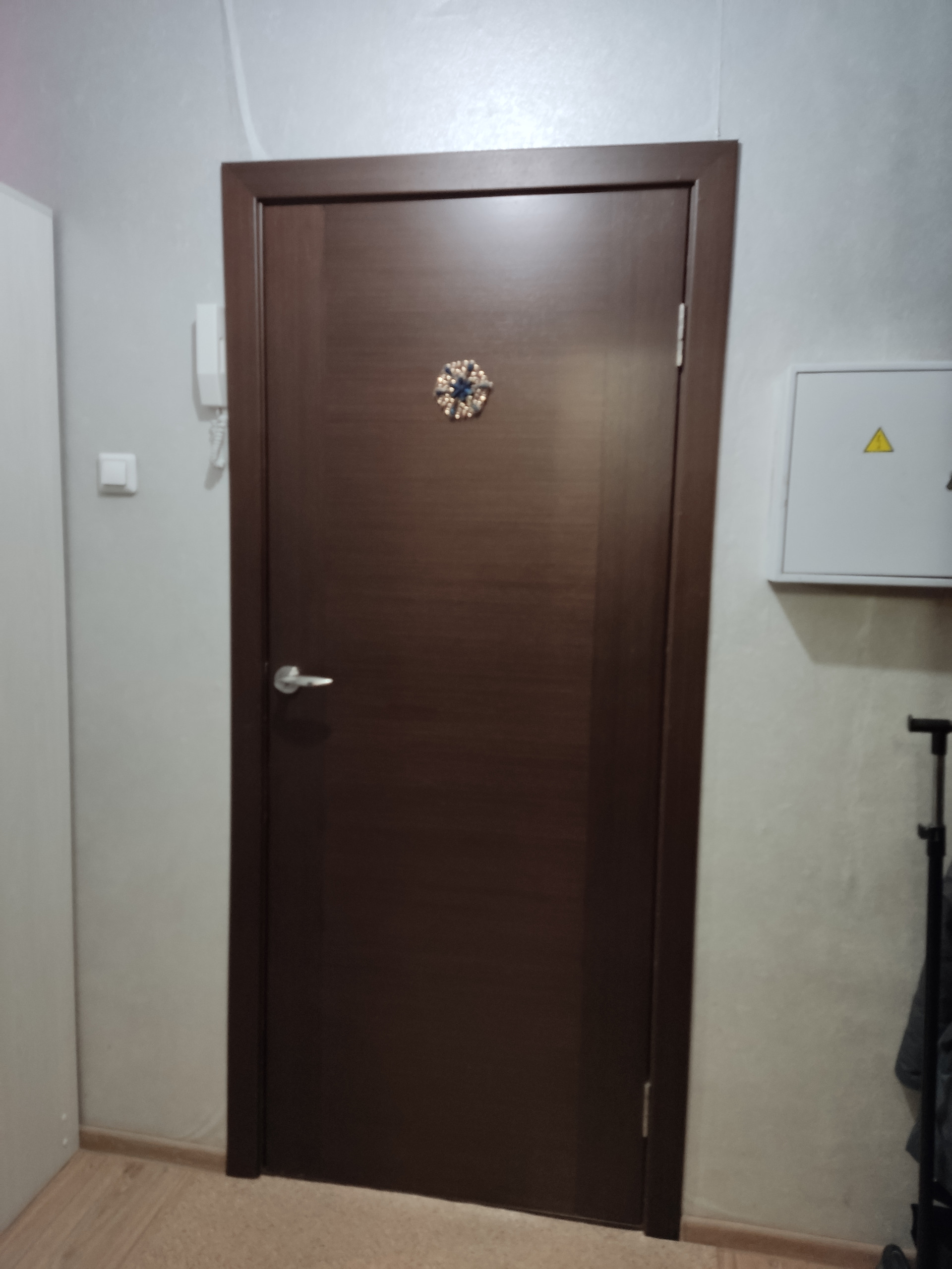 Входная дверь двойная, внутренняя массив. На полу ламинат, санузел раздельный, в ванной теплый пол, из комнаты застекленная (евроокно) лоджия.
