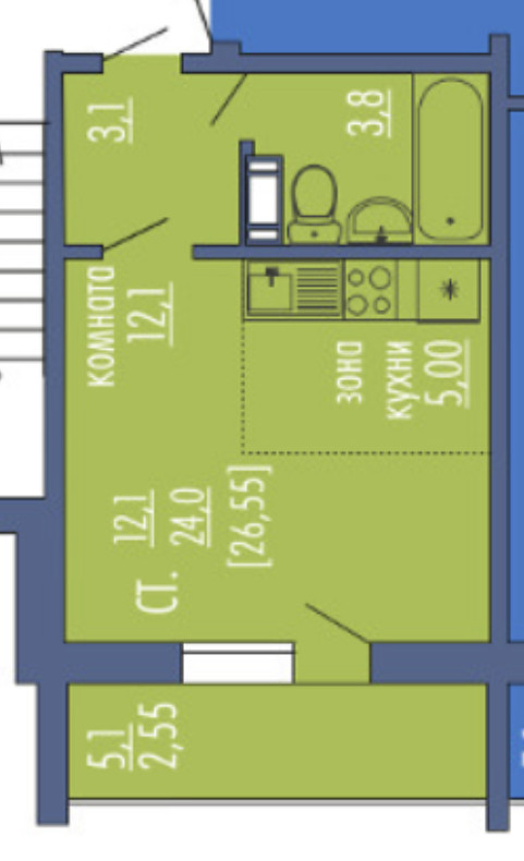 Общая площадь 24.2 м2
