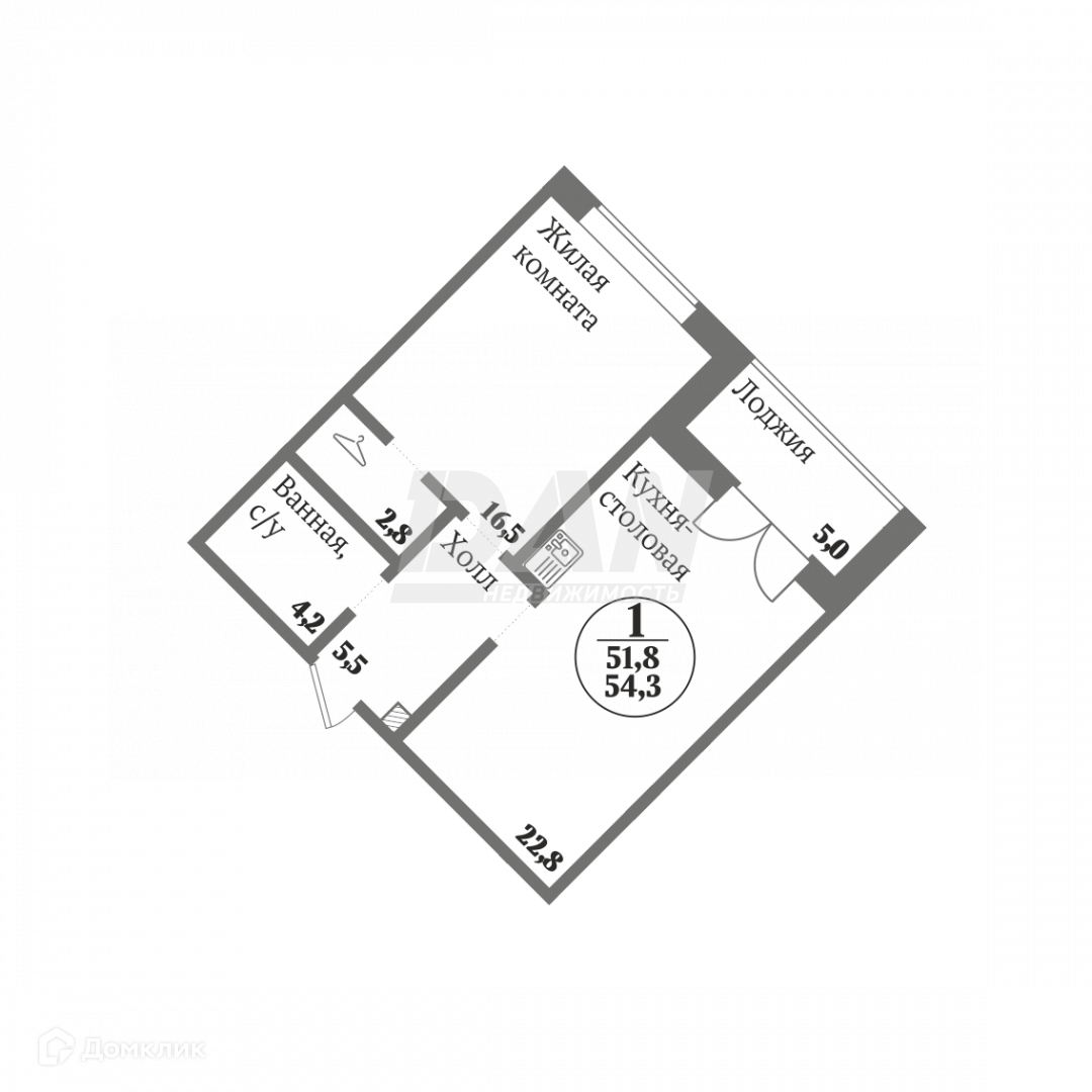 Общая площадь 54.2 м2