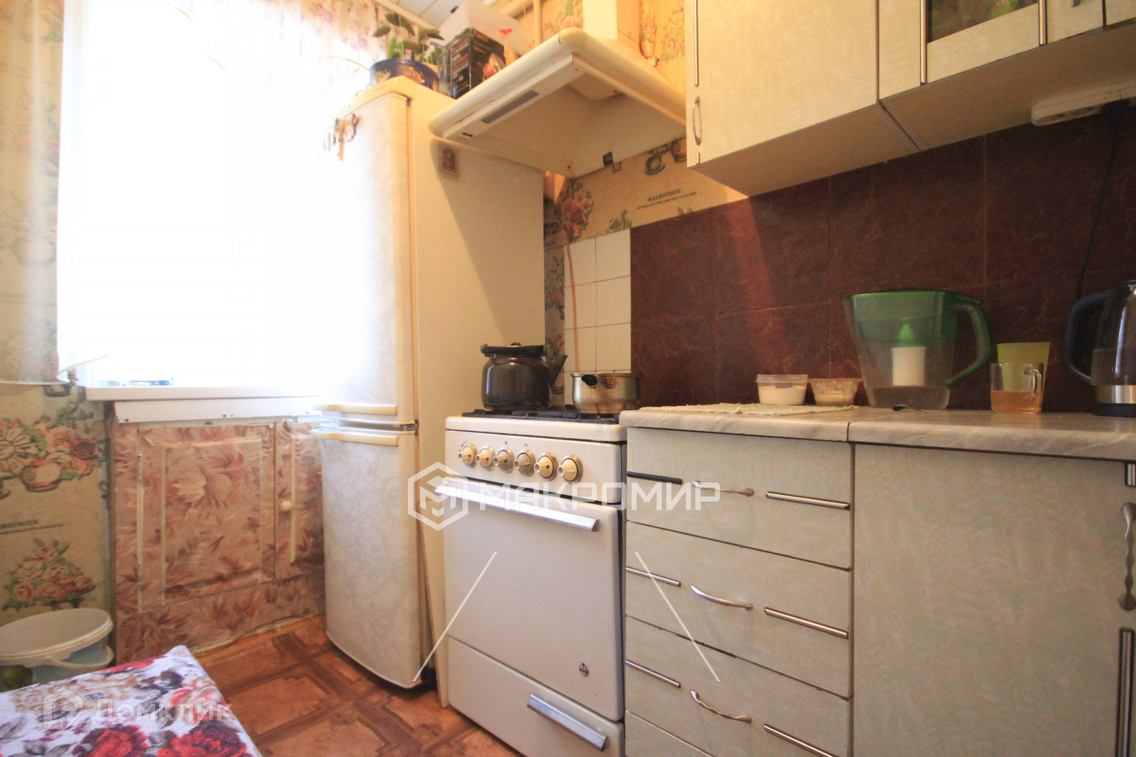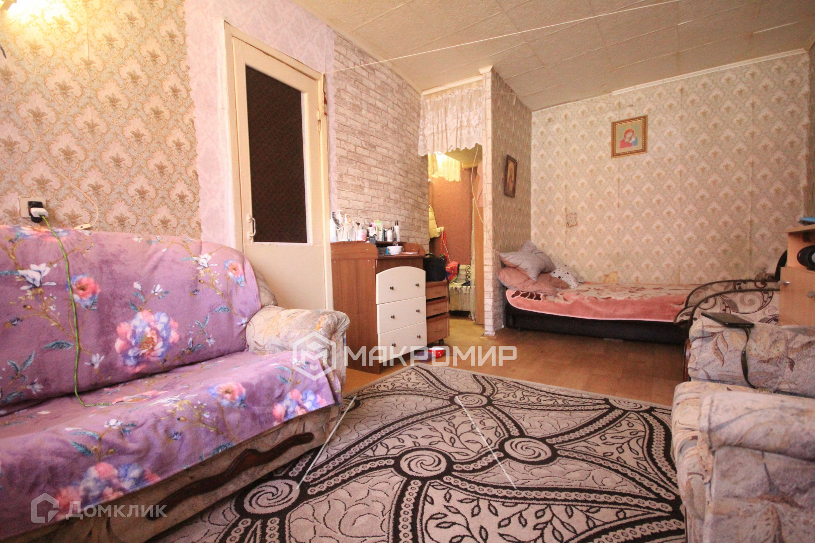 На кухне остаётся кухонный гарнитур, в комнате  шкаф и диваны
