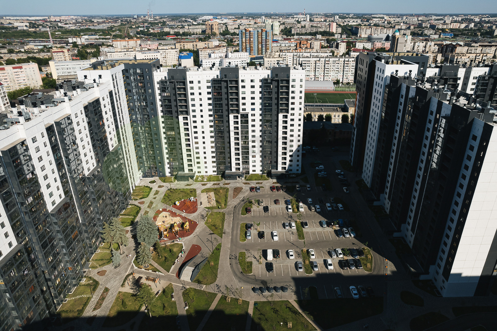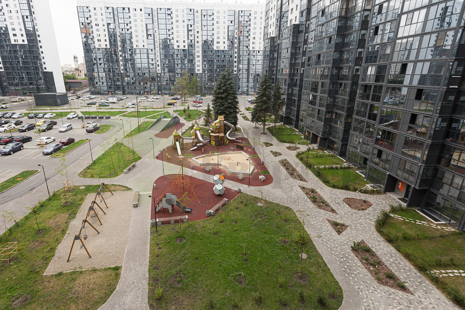 EVOPARK – это огороженная территория, наземный двухуровневый паркинг, а также большое количество парковочных мест в границах двора. Ландшафтный дизайн на территории комплекса, сквер обустроенный лавочками и пешеходными дорожками. Оборудованные детские площадки с травмобезопасным покрытием и малыми архитектурными формами, футбольное и волейбольное поле также с травмобезопасным покрытием, скалодром и велосипедные дорожки. Все пешеходные переходы на уровне тротуара (безбарьерная среда). На всей территории жилого комплекса работает EVO- безопасность, это более 100 камер которые ведут наблюдение за ситуацией в ЖК, въезд в комплекс осуществляется со стороны улиц Монакова, Орджоникидзе, Овчинникова. Этот жилой район находится в самом центре города, что дает прекрасную возможность насладиться достопримечательностями города. В непосредственной близости находятся школы, детские сады, высшие учебные заведения, аптеки, магазины, кафе и рестораны. Удобная транспортная развязка до остановки общественного транспорта 5 минут.