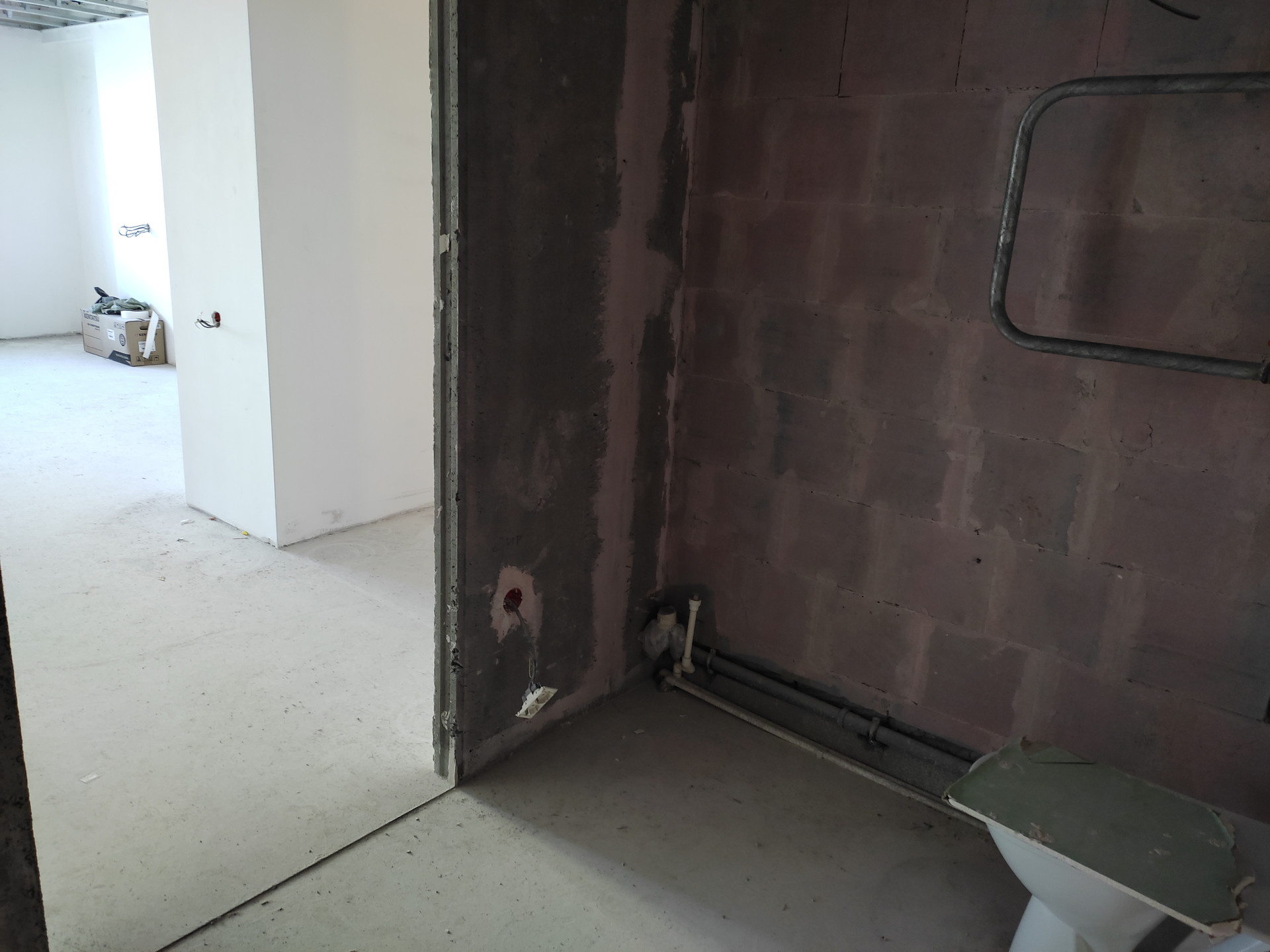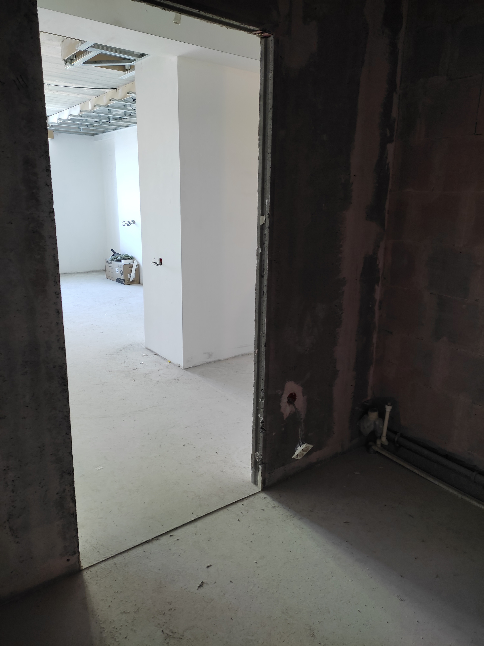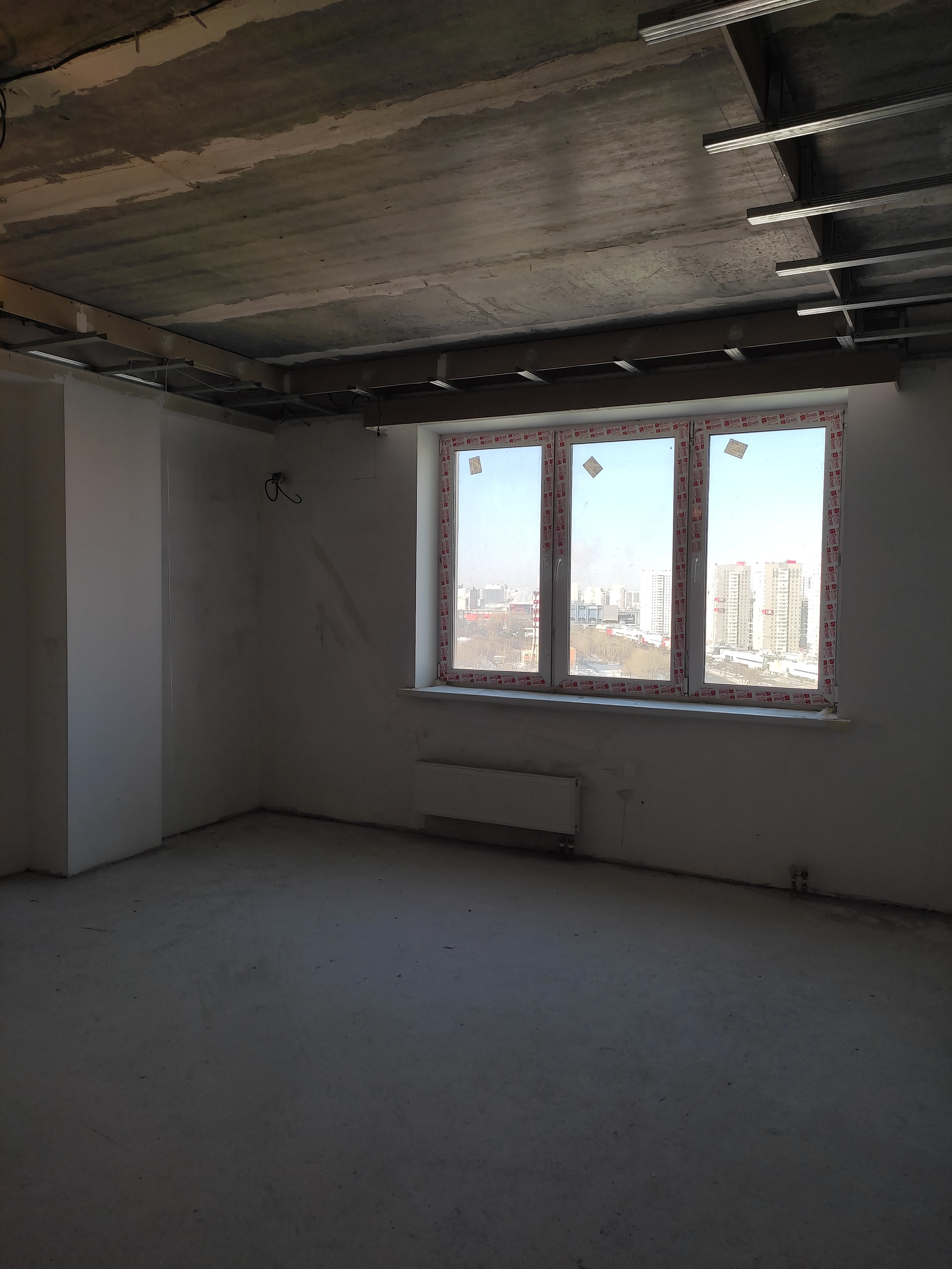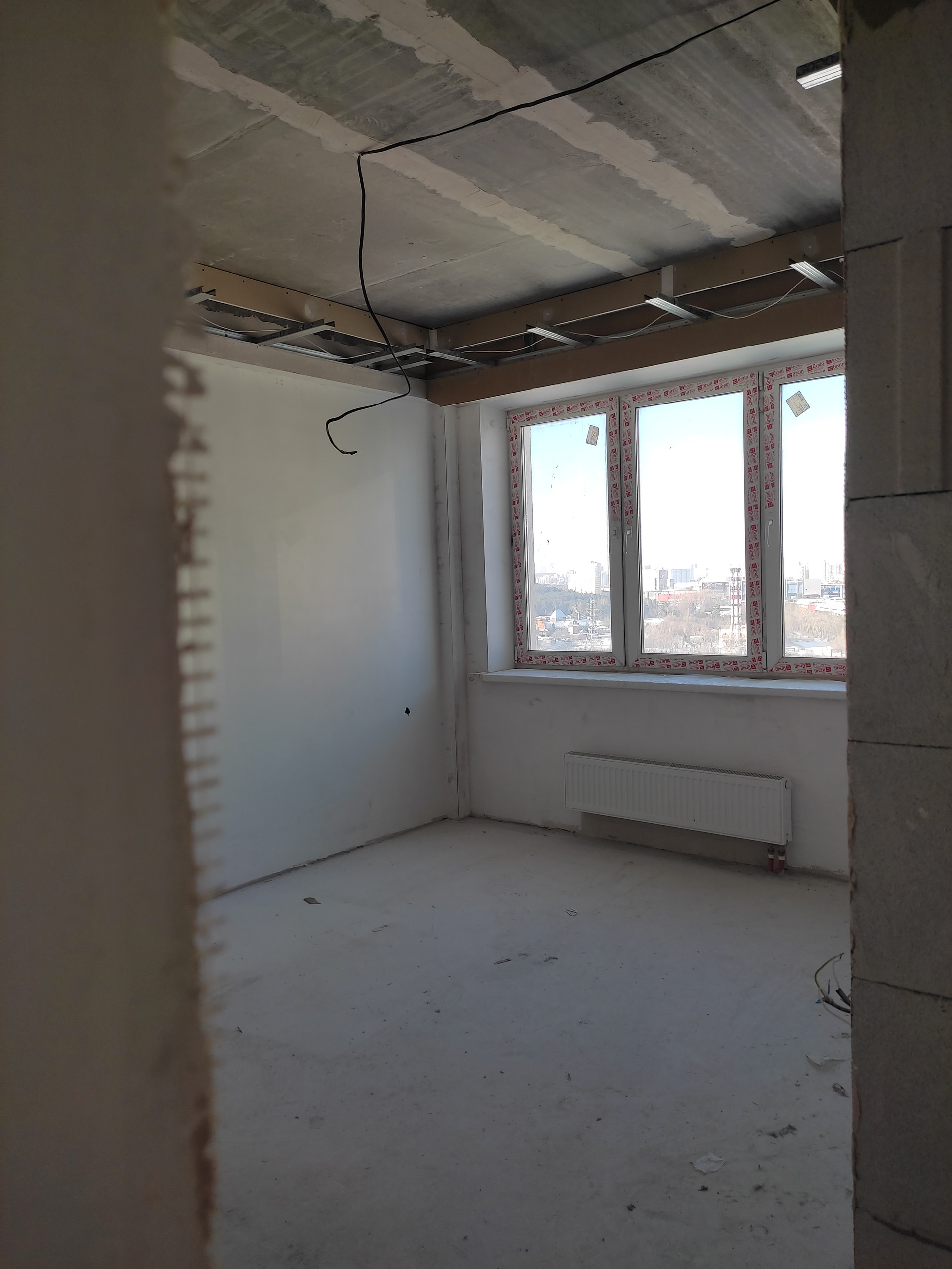 Стены оштукатурены (качественно). Вся проводка проведена (плита, вытяжка, кондёр, розетки, телевизор), счетчики (вода, тепло, электро) установлены. Коммуналка всего до 4000 р в мес.