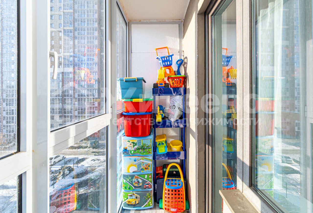 В каждой комнате лоджия с панорамным остеклением, получается 3 лоджии в квартире. Красивый вид из окна.