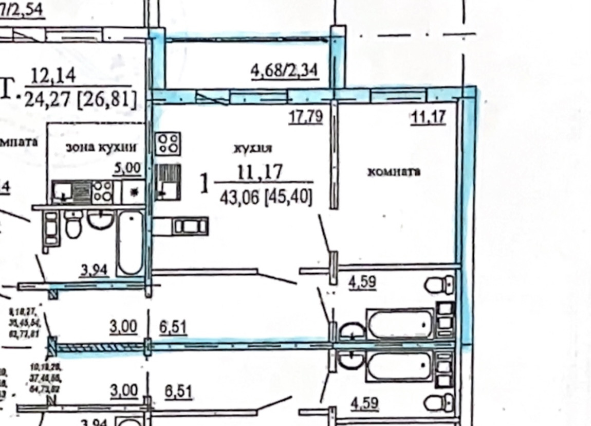 + гостинная 17,79 с зоной кухни 11,7, спальня 11,7