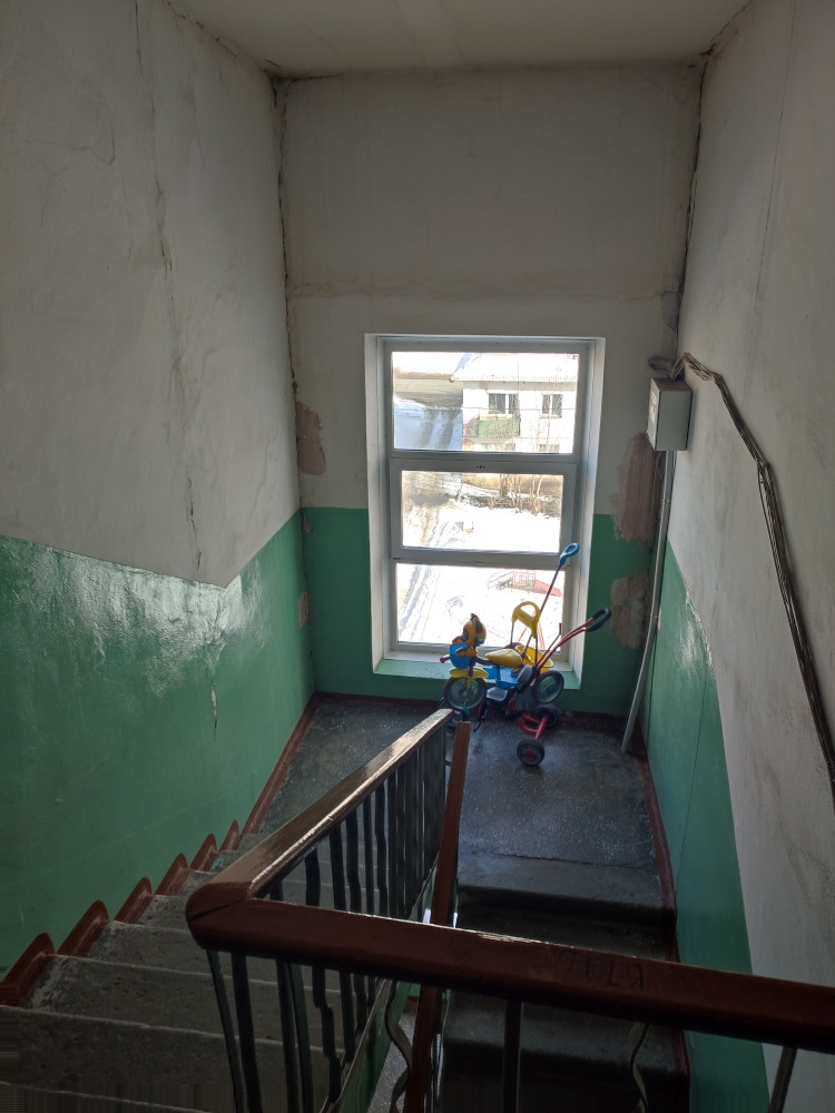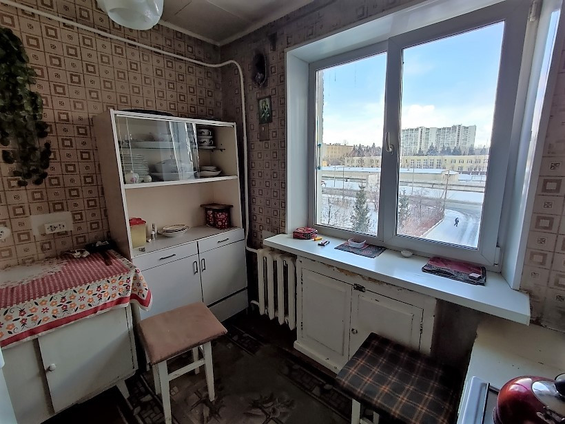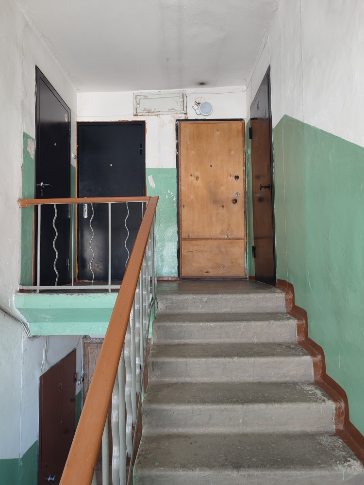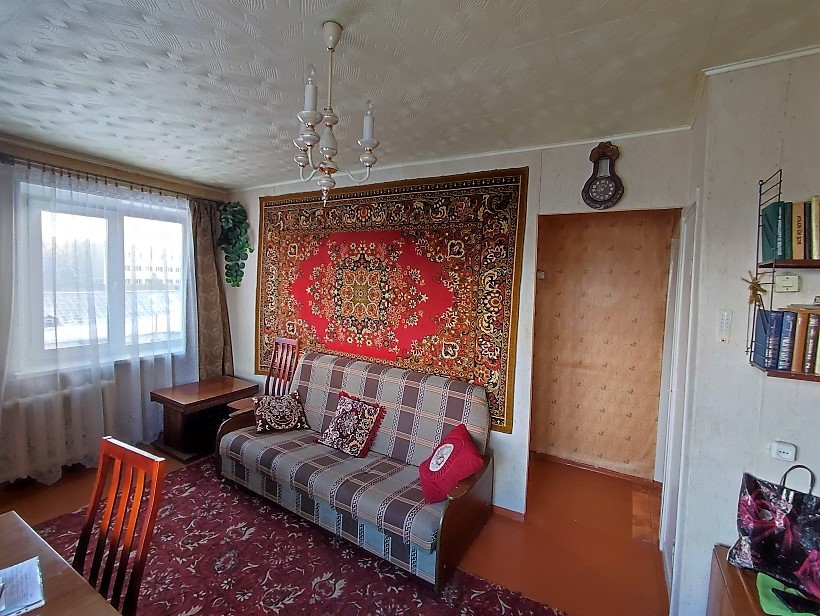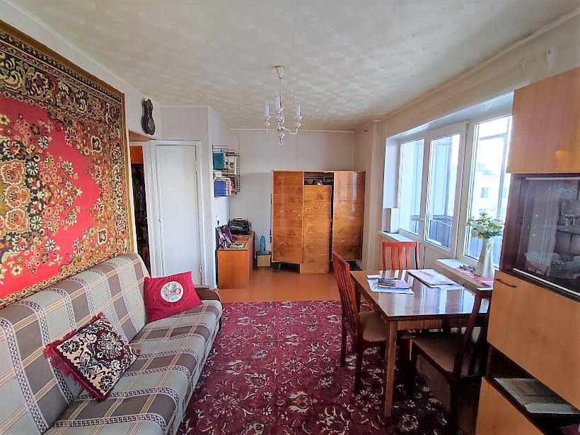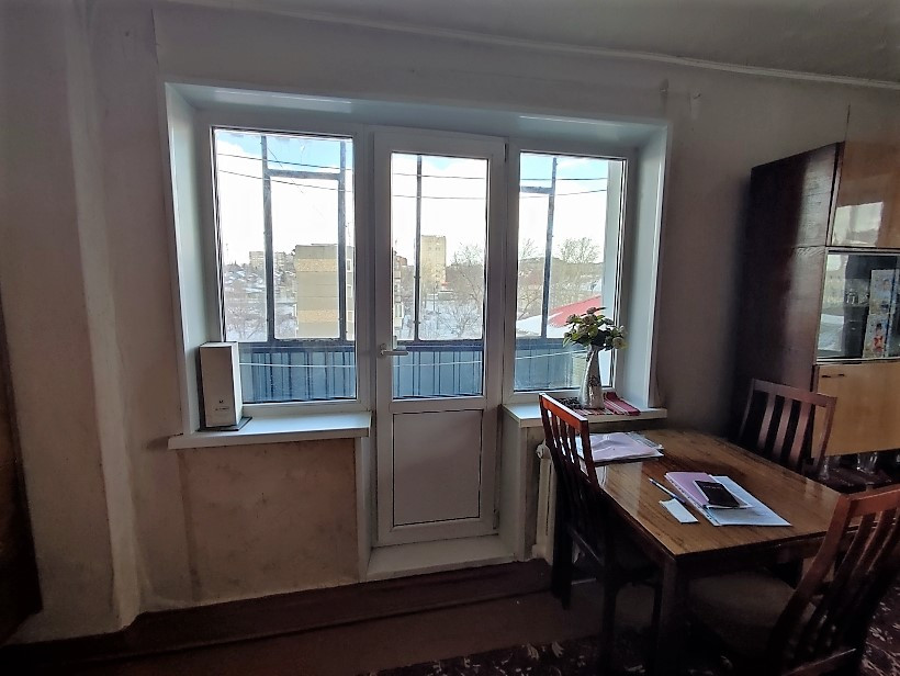 Квартира расположена на 5 этаже пятиэтажного дома. Квартира торцевая. В комнате 2 окна, что позволяет при желании зонировать комнату. Нет соседей сверху и сбоку. В квартире установлены евроокна, балкон застеклен. Квартира чистая, состояние обычное.  Больше 30 лет принадлежит одной семье.