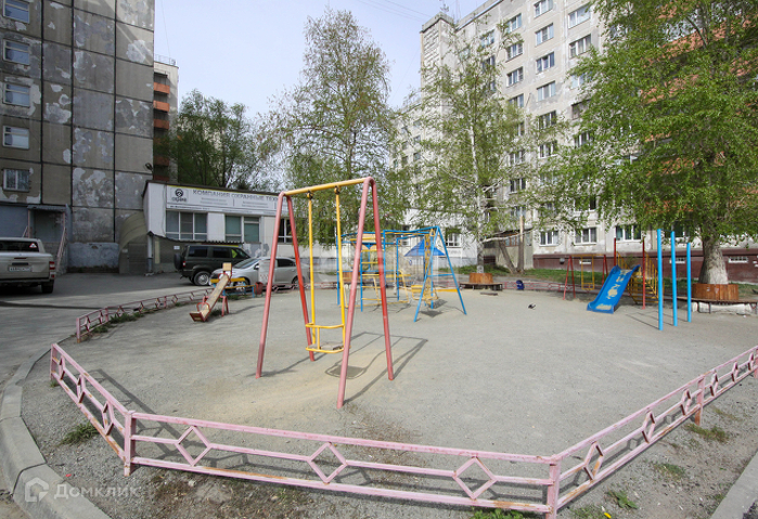 Во дворе дома небольшая детская площадка.