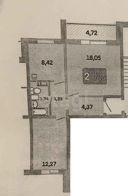 Общая площадь 50.2 м2