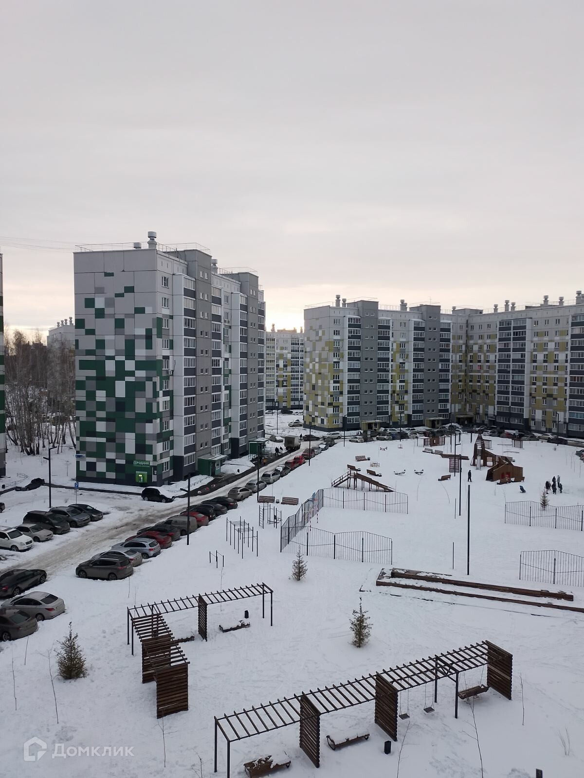 Детская и спортивная площадка, парковка во дворе.