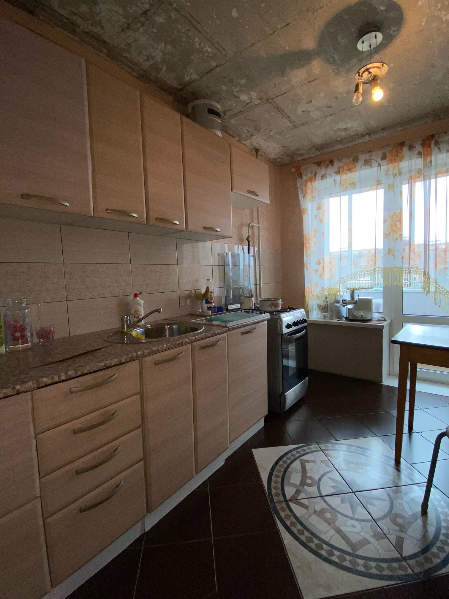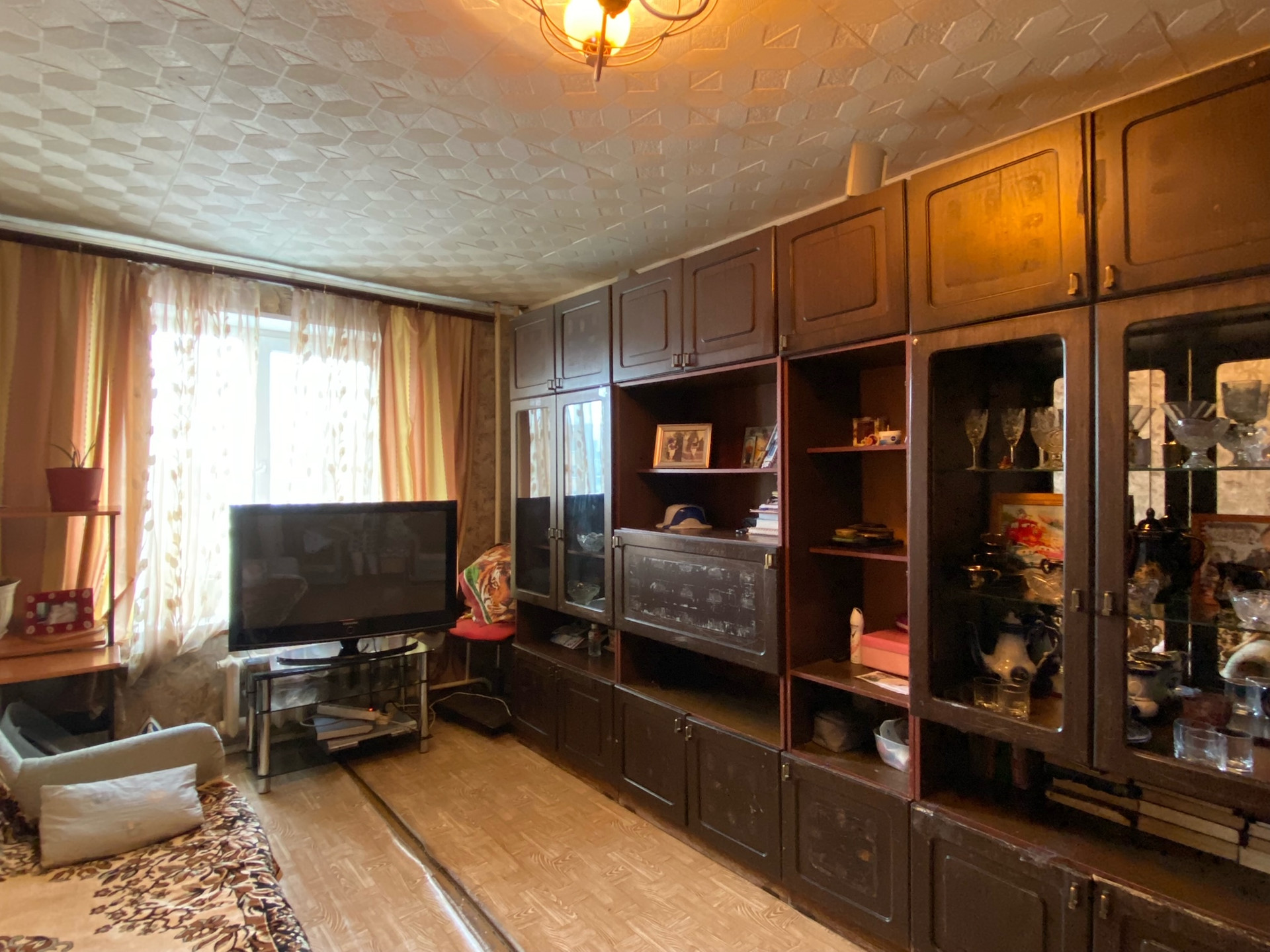 Квартира частично требует ремонта, ремонт произведен только на кухне. Квартира светлая и теплая. С/у совмещен, 2 балкона, входная железная дверь.  Один совершеннолетний собственник, в собственности более 5 лет.  Удобное расположение дома: в шаговой доступности остановка общественного транспорта с улиц Российская и Труда, множество магазинов, парикмахерские, детский сад и школа во дворе.