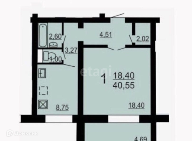 Общая площадь 40.6 м2