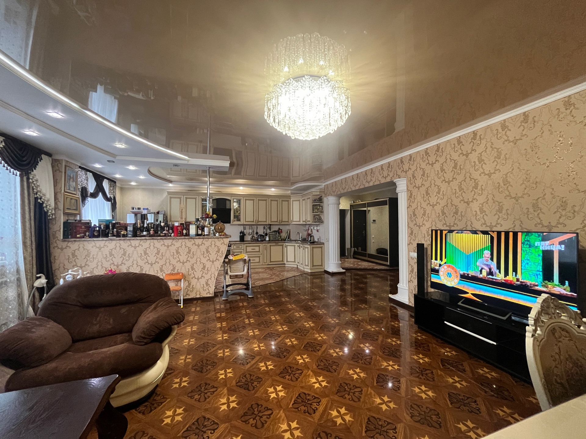 Большая кухня + гостинная, 4 просторные спальни.