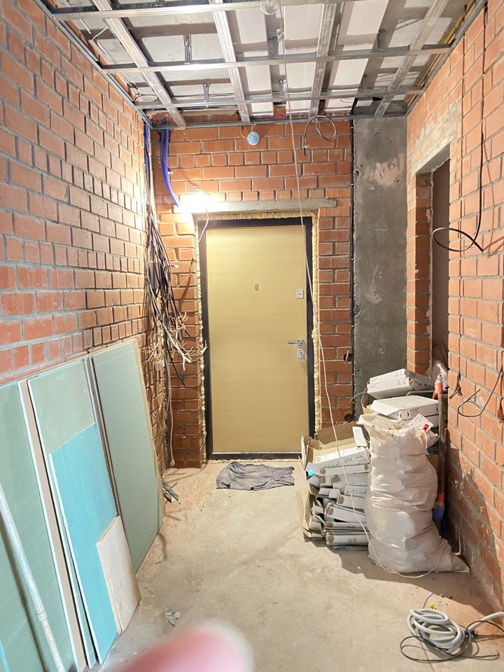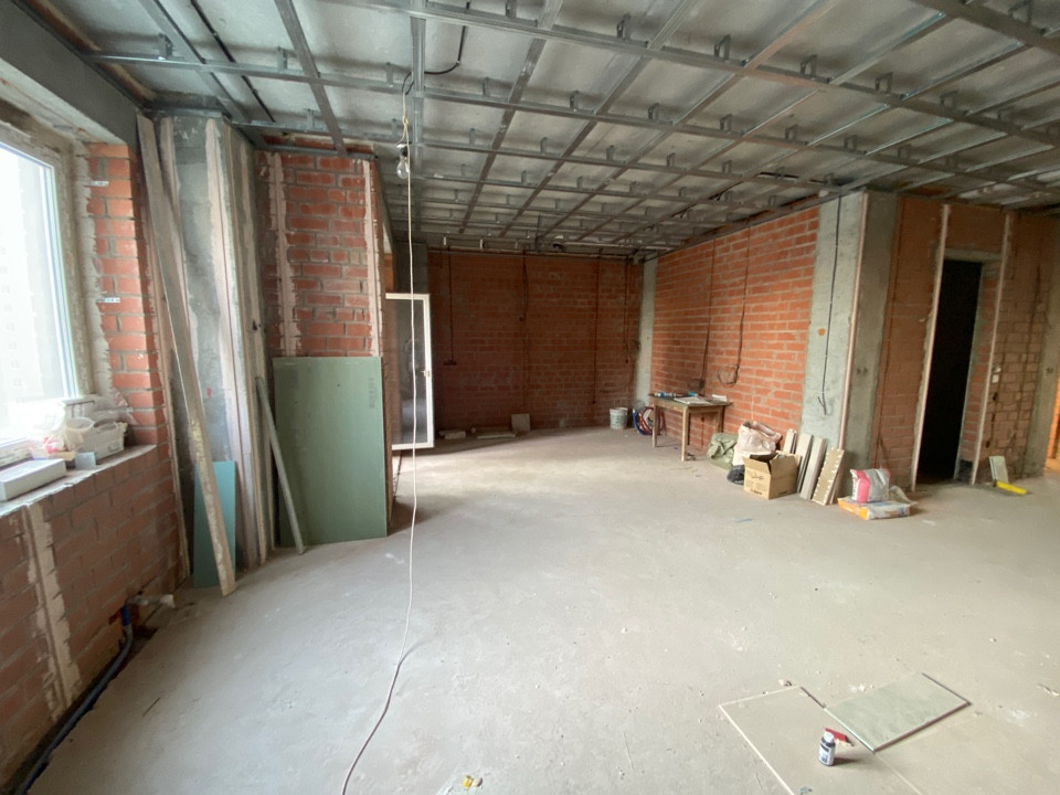 Квартира, студия+3 спальни, расположена на 6 этаже. Начат ремонт. Полностью сделана электро разводка по всей квартире, подготовлены конструкции для натяжных потолков, в комнатах стены подготовлены под финишную отделку, два сан.узла полностью готовы под установку сан. техники (керамогранит). На одной лоджии сменили наружное остекление. Куплены новые радиаторы.