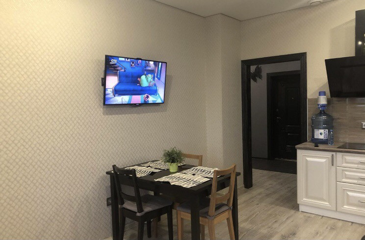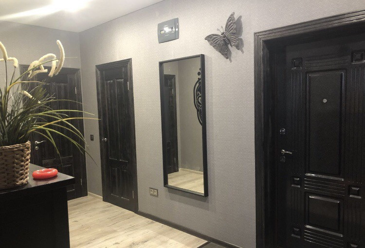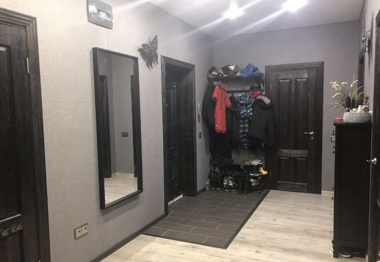 В квартире заменена входная дверь, межкомнатные двери из массива сосны, натяжной потолок, ламинат 33 класса, два санузла ( 4,5 кв.м и 8,6 кв.м). Большая гардеробная с системой хранения. Два балкона, один из которых панорамный (10 кв.м и 8 кв.м).