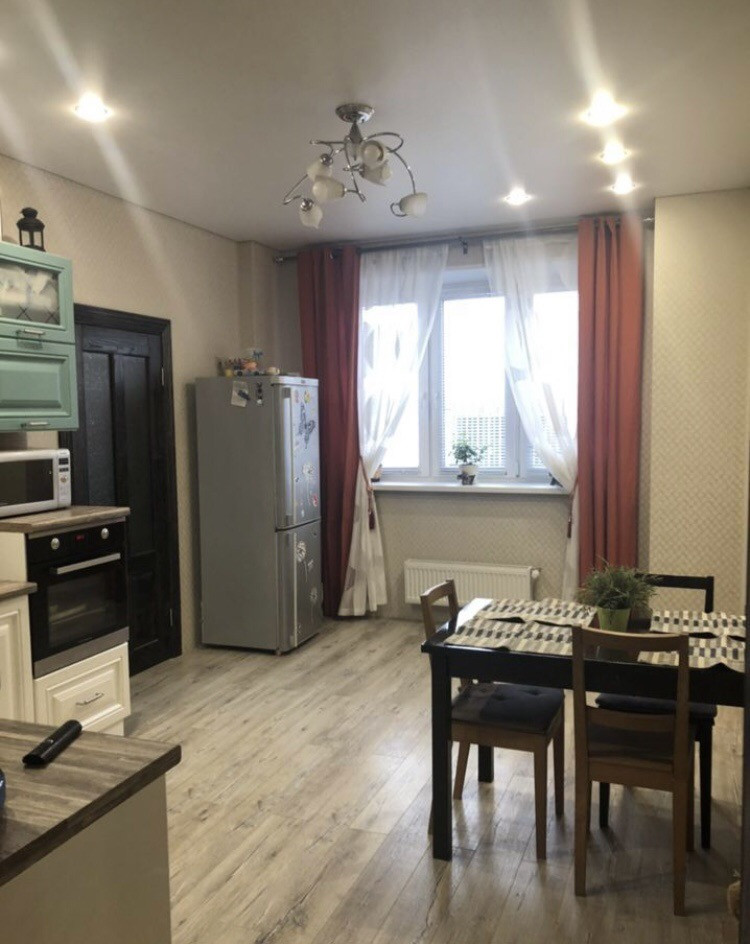 Ремонт имеется  во всех комнатах кроме санузлов. Кухонный гарнитур, встроенная техника (варочная поверхность, духовой шкаф, вытяжка) остается.