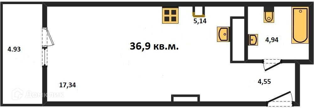 Общая площадь 36.2 м2