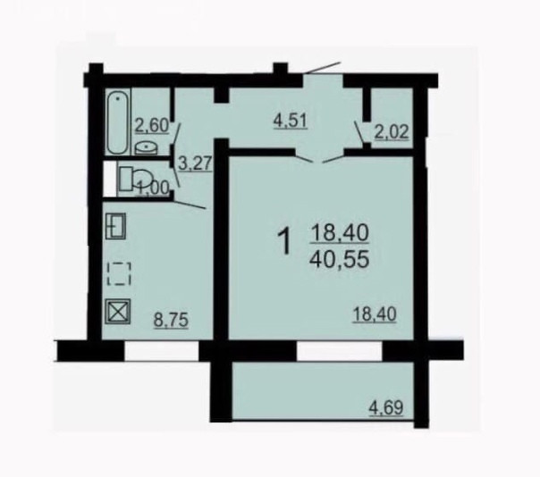 Балкон, лоджия 1 балкон
