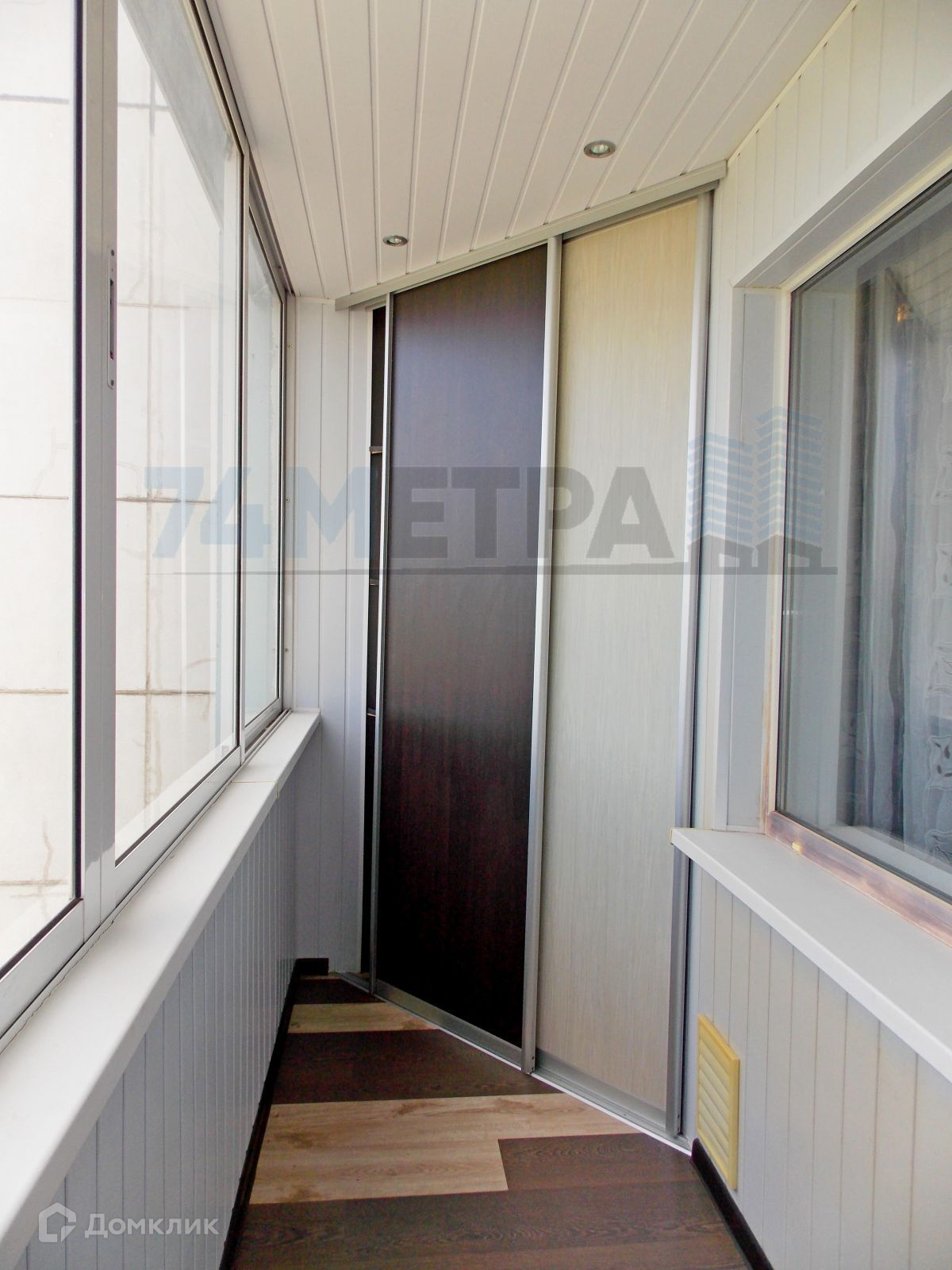 +застекленная лоджия, на полу ламинат, встроеный шкаф,