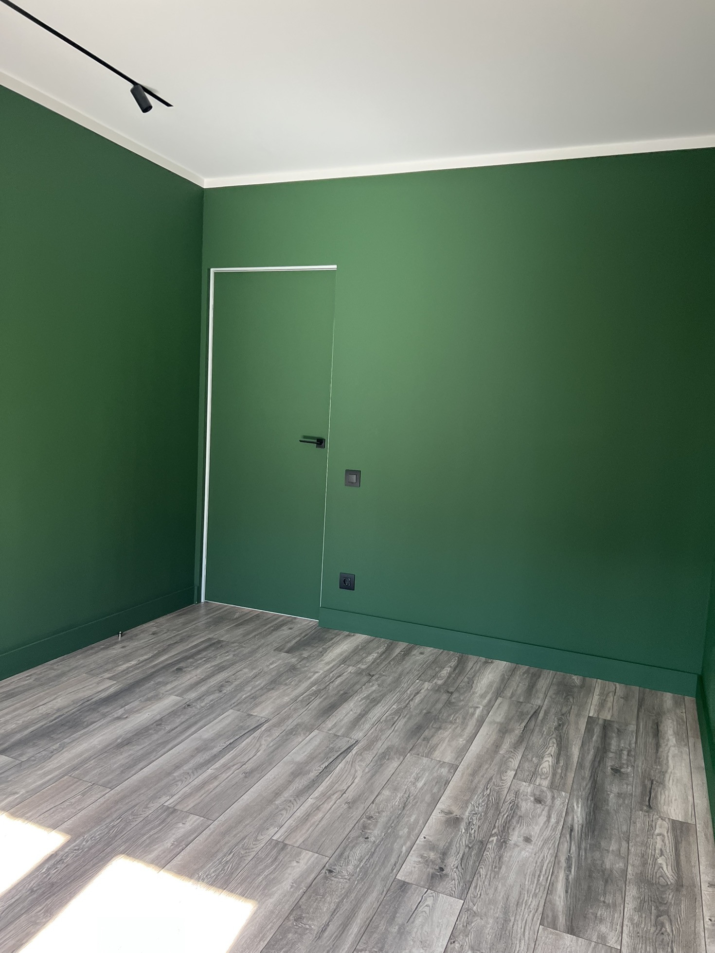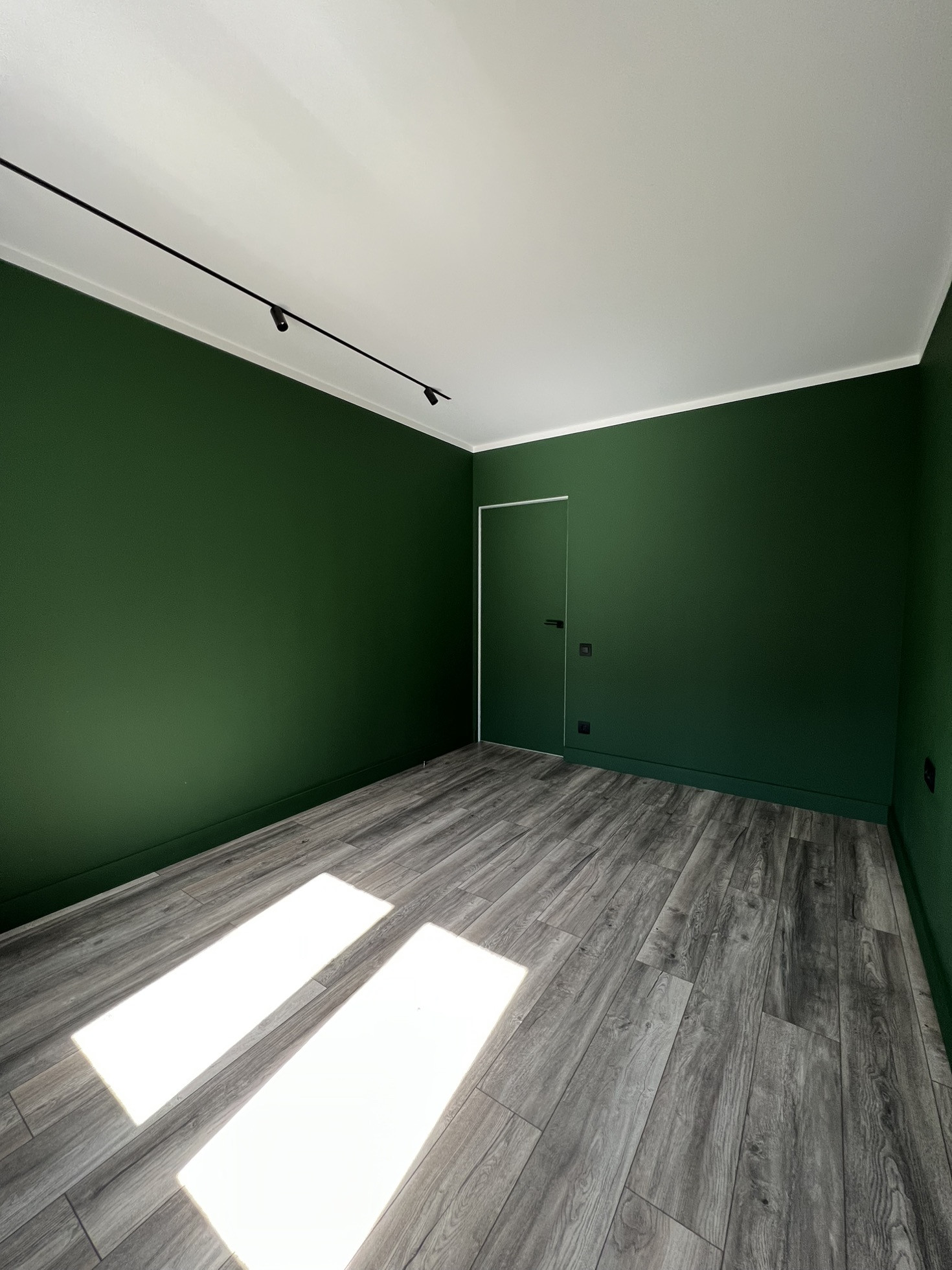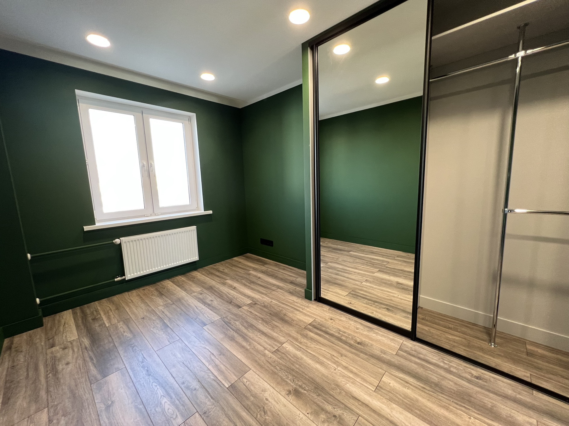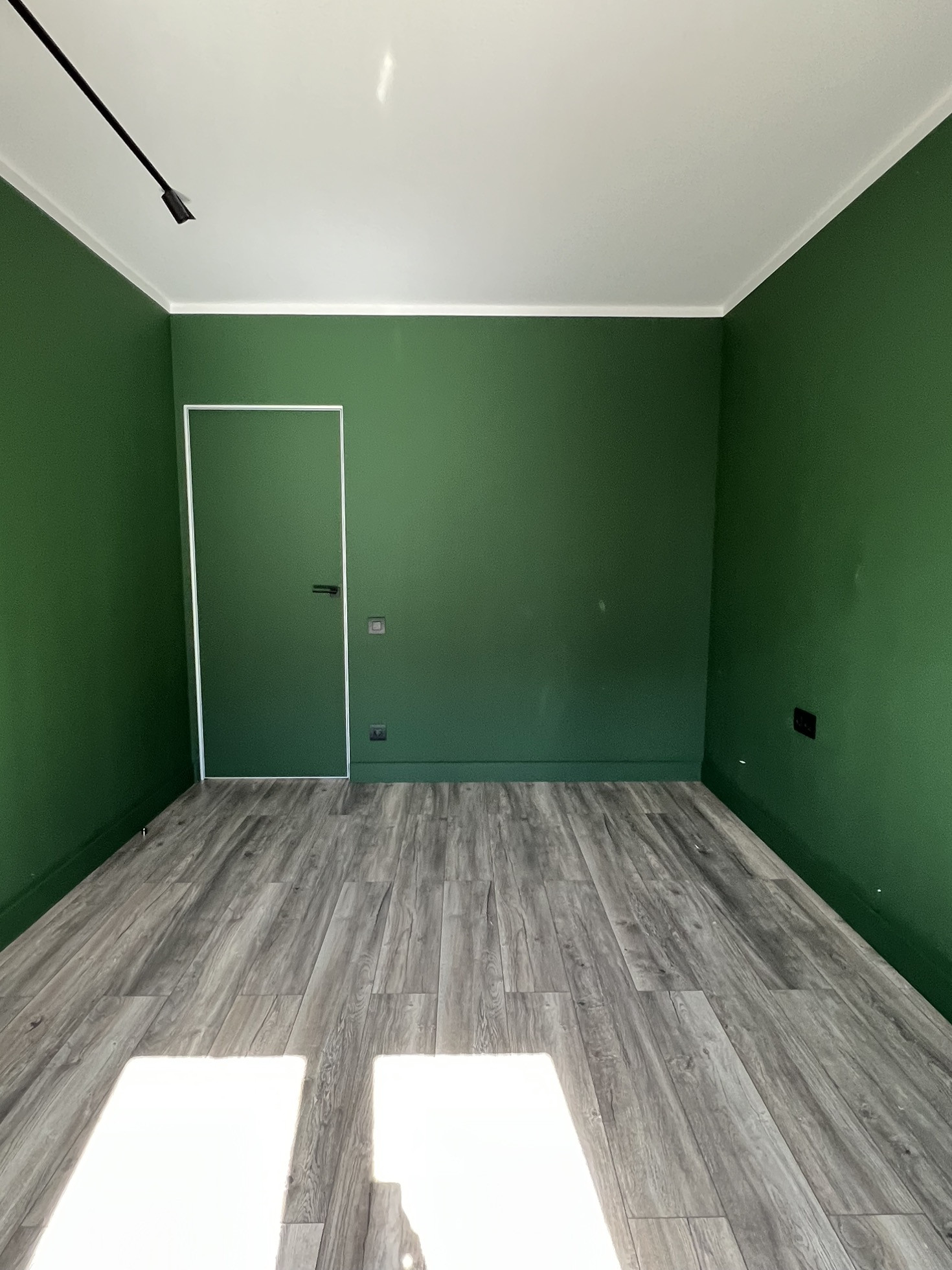 Стены- отштукатурены, выровнены, окрашены глубокий, красивый, зеленый цвет( на фото очень сложно передать оттенок)