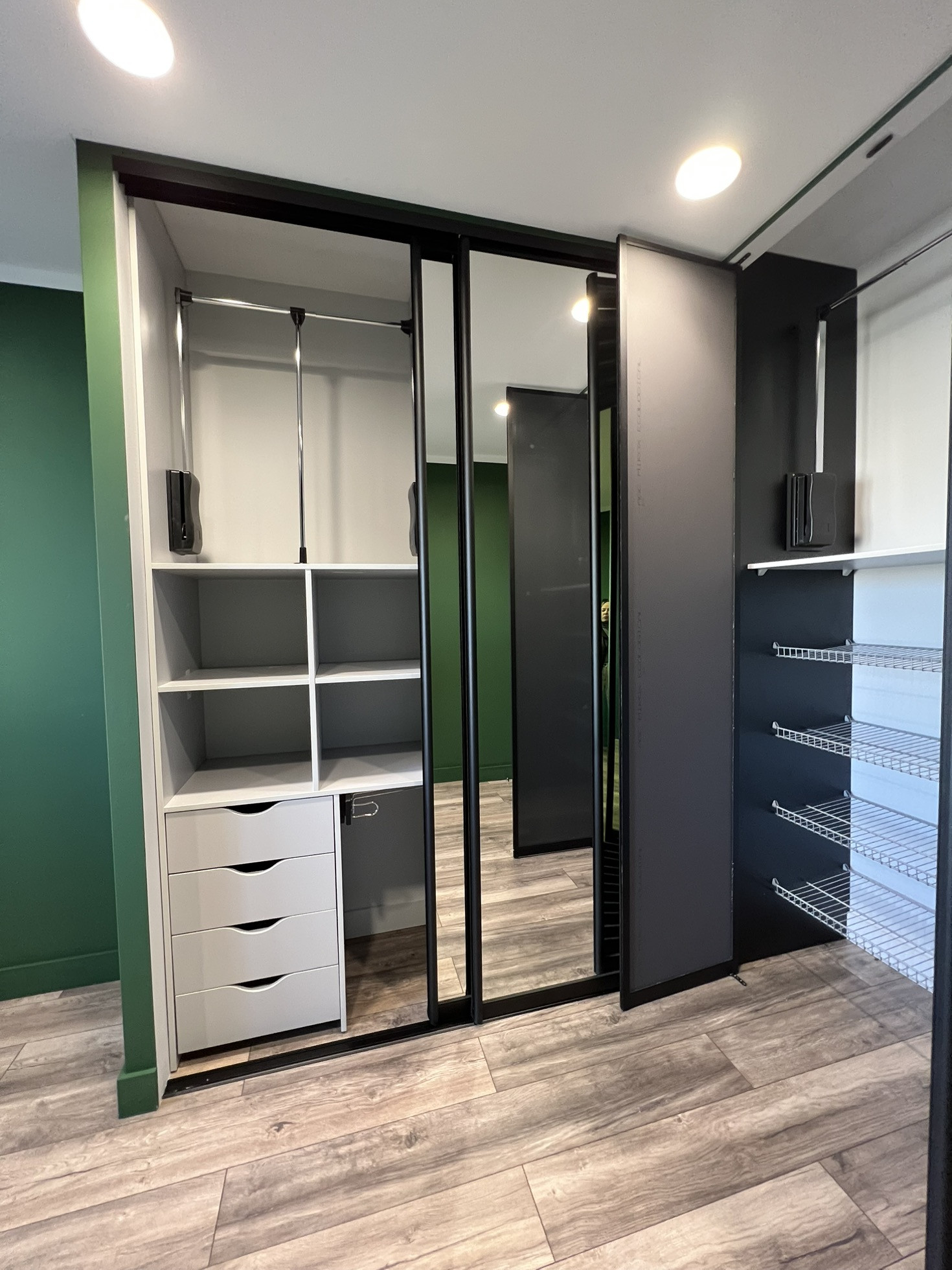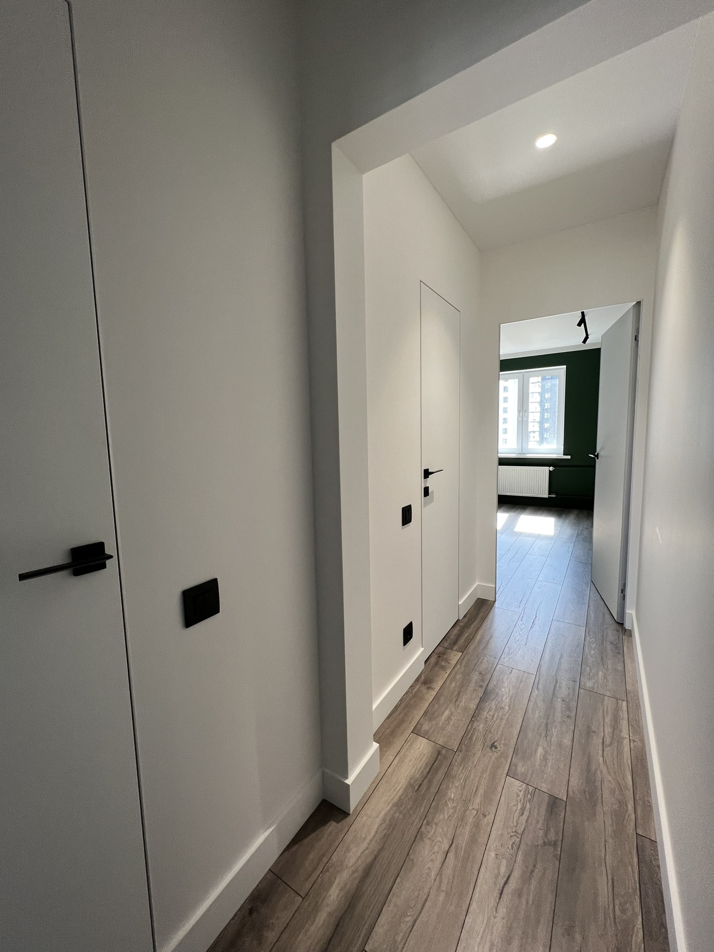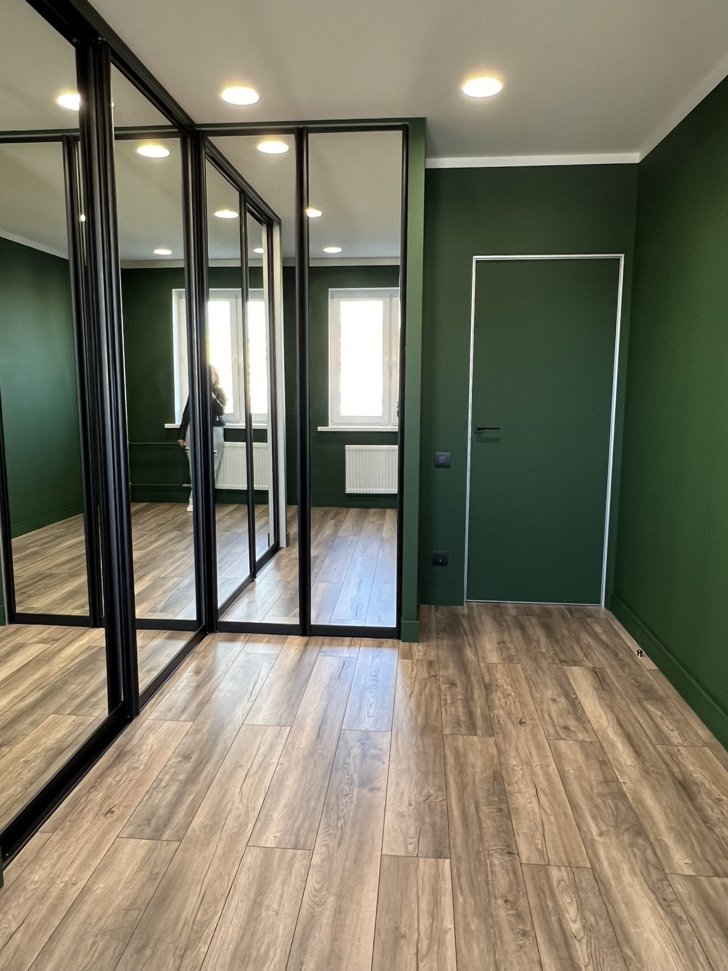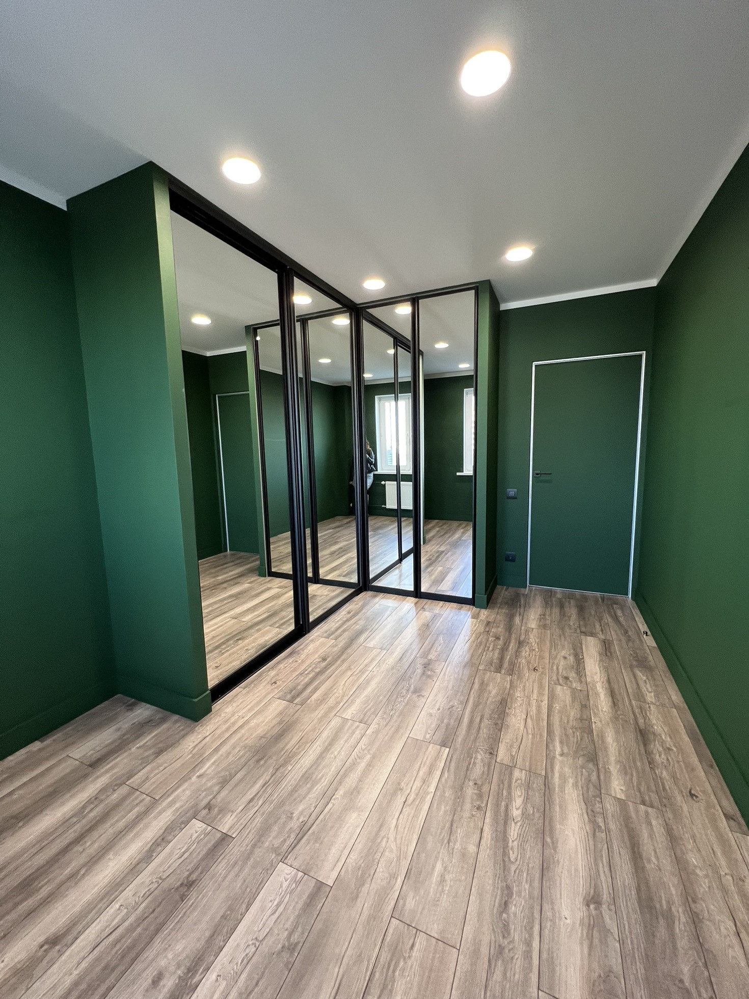 Стены- отштукатурены, выровнены, окрашены глубокий, красивый, зеленый цвет( на фото очень сложно передать оттенок)