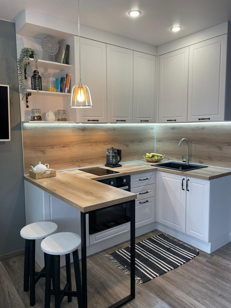 Покупателю оставляем кухню с встроенной техникой, шкаф рядом с холодильником, гардеробная, вся мебель в туалете.