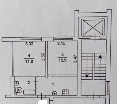 Комнаты 11 и 12 кв.м., есть небольшая кухня. Сан. узел совмещен.