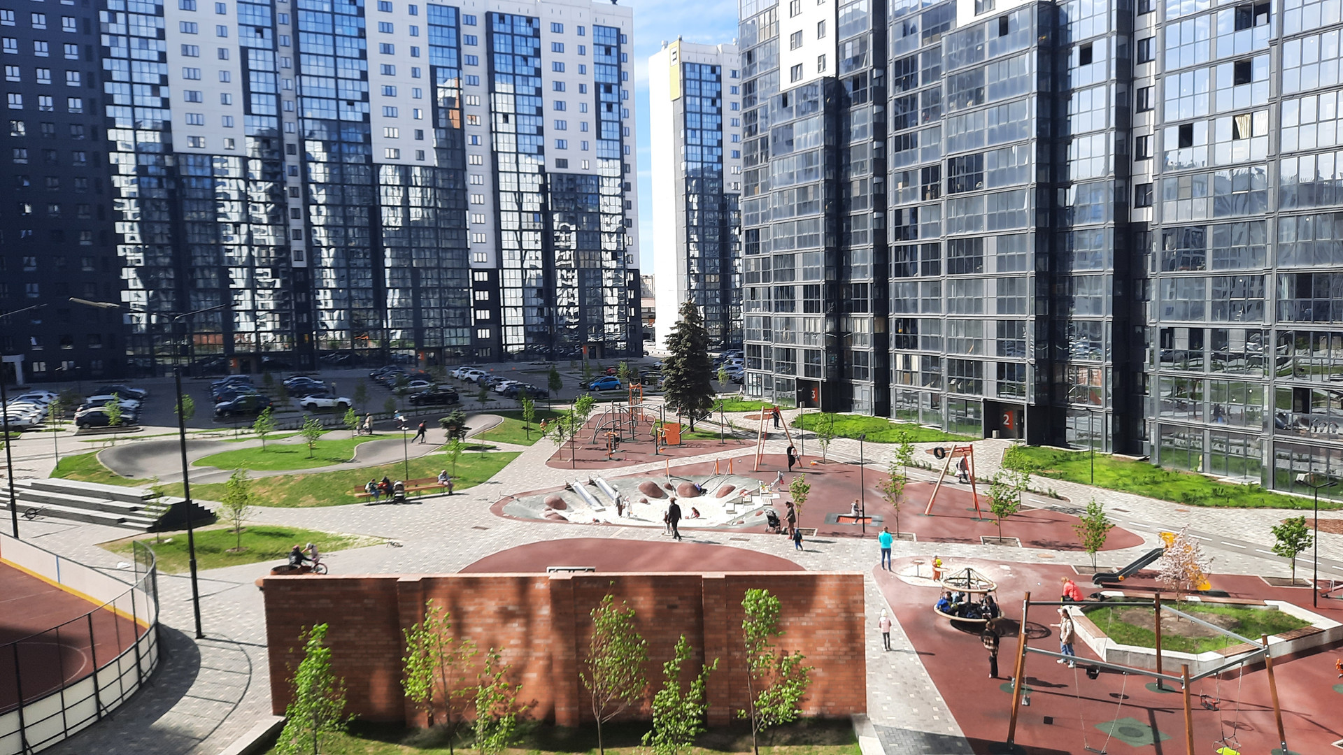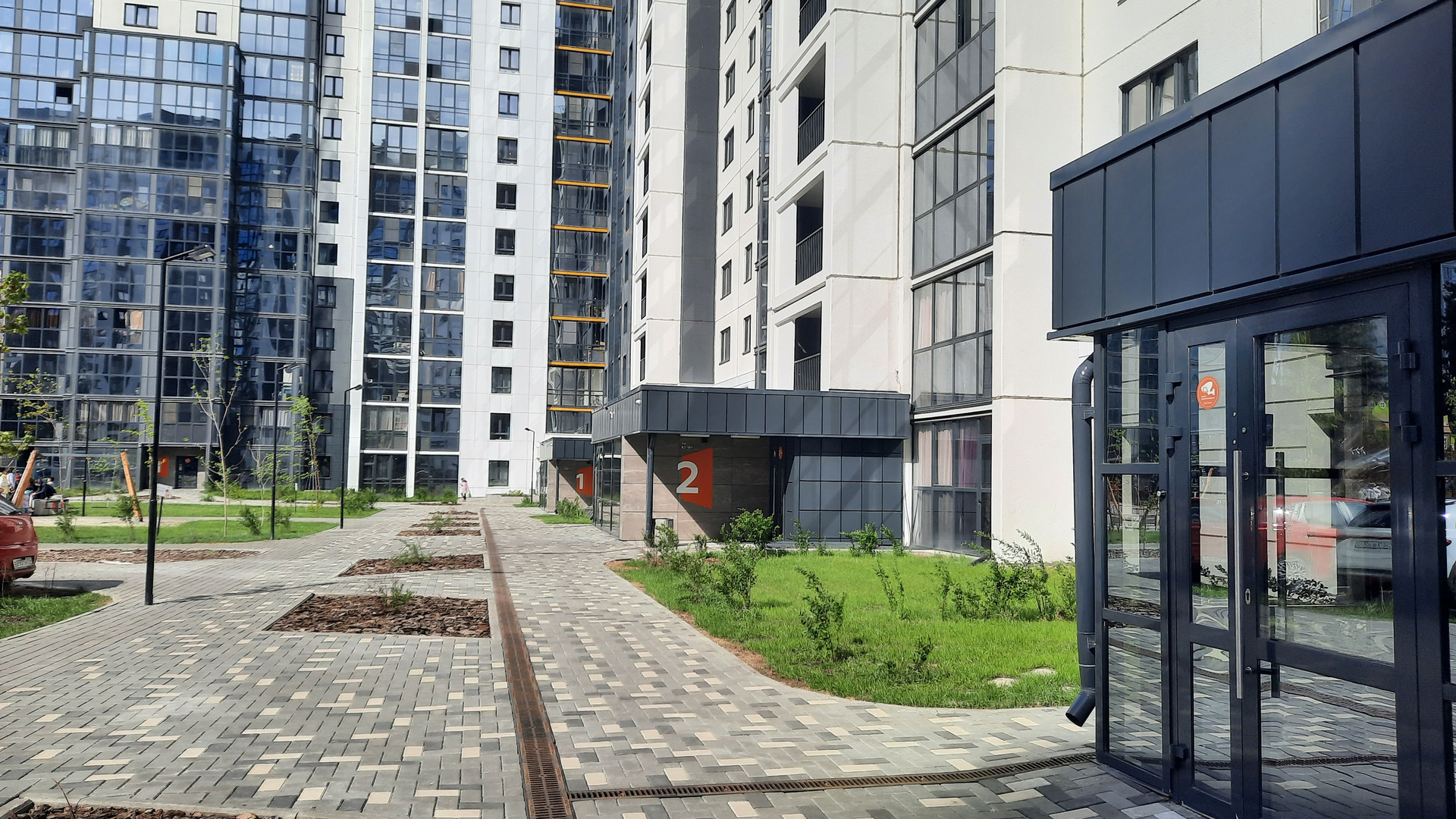 Благоустроенный двор, огороженная территория ЖК, детские и спортивные площадки, парковки. Комфортные входные группы.