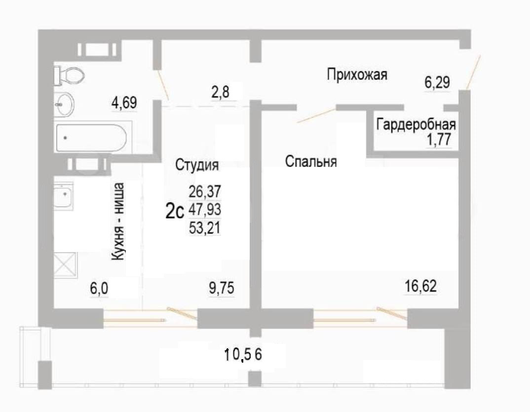 Общая площадь 53.2 м2