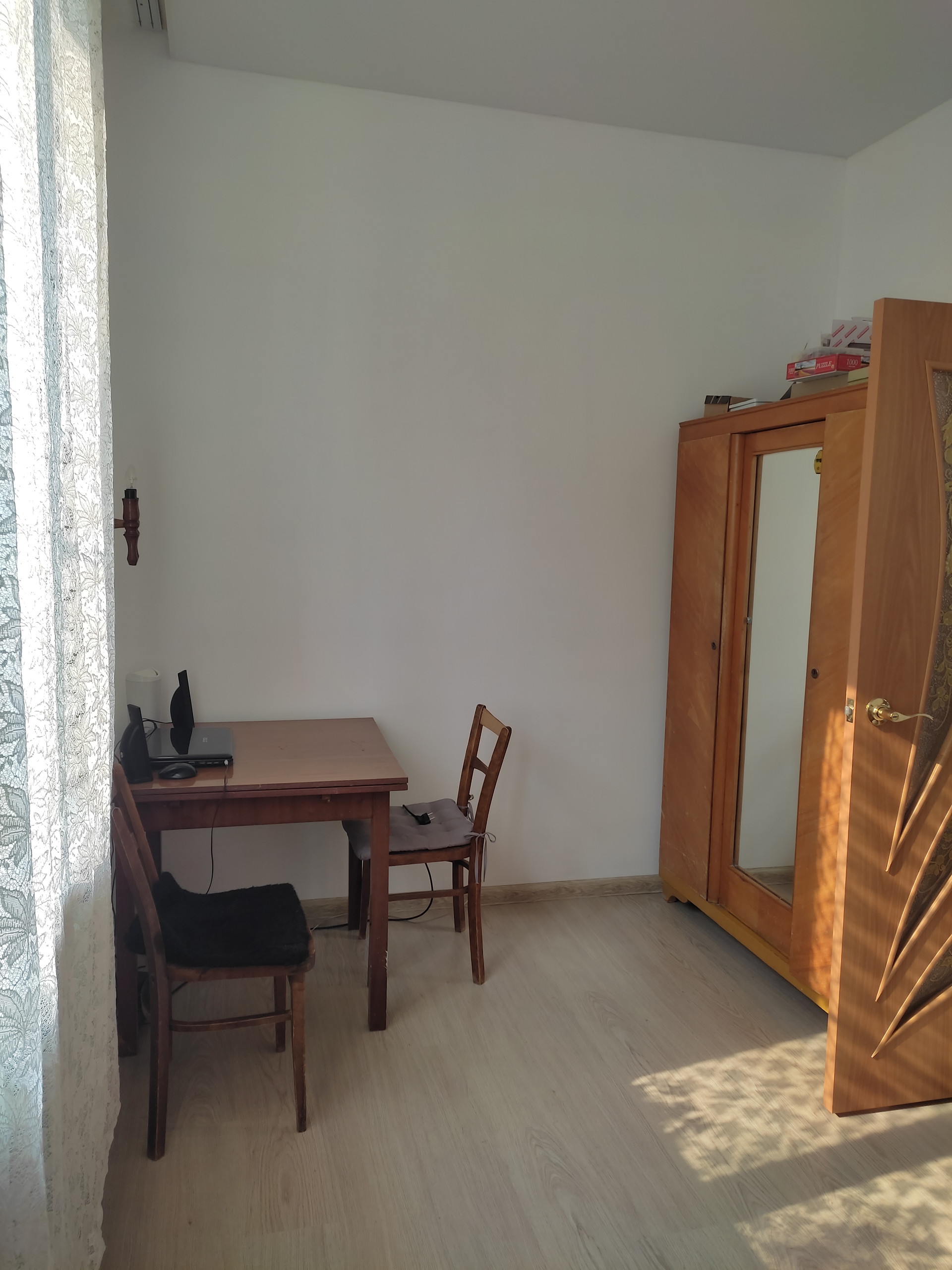 Двухкомнатная полнометражная квартира. Комнаты смежные (9 и 16 кв.м.), кухня 7 кв.м. В комнатах ремонт (ламинат, натяжные потолки). Остальная площадь без ремонта. Окна пластиковые везде. Батареи поменяны. Без балкона. Квартира теплая. Один собственник. Без долгов.