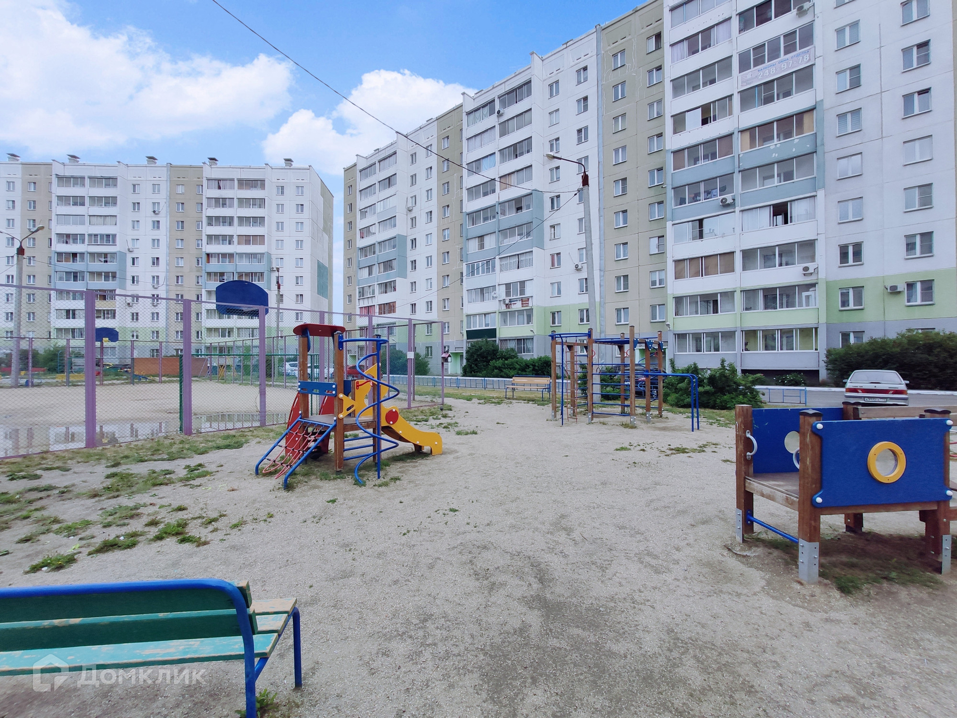Большой двор с детскими и игровыми площадками.