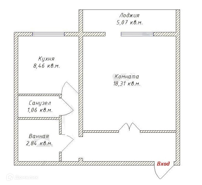Общая площадь 40.6 м2