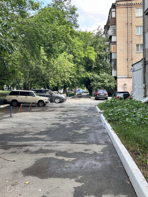 Двор просторный, чистый, со множеством деревьев, с детской игровой площадкой.