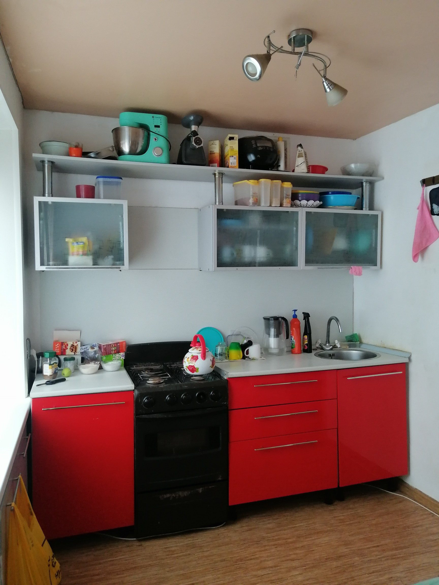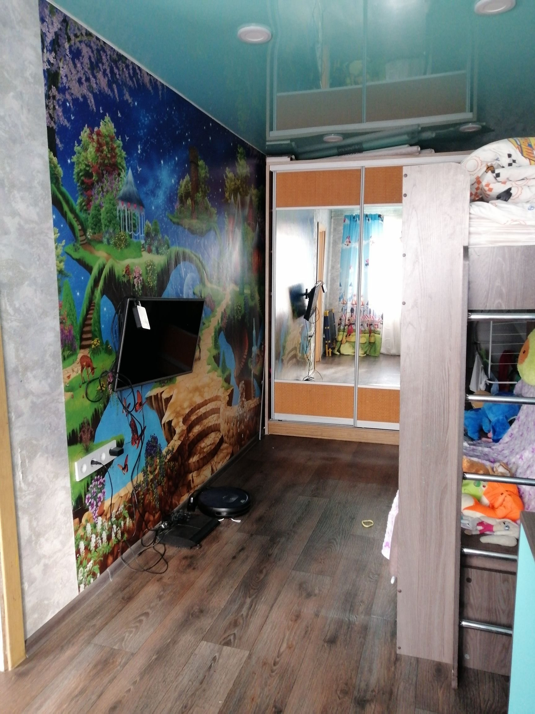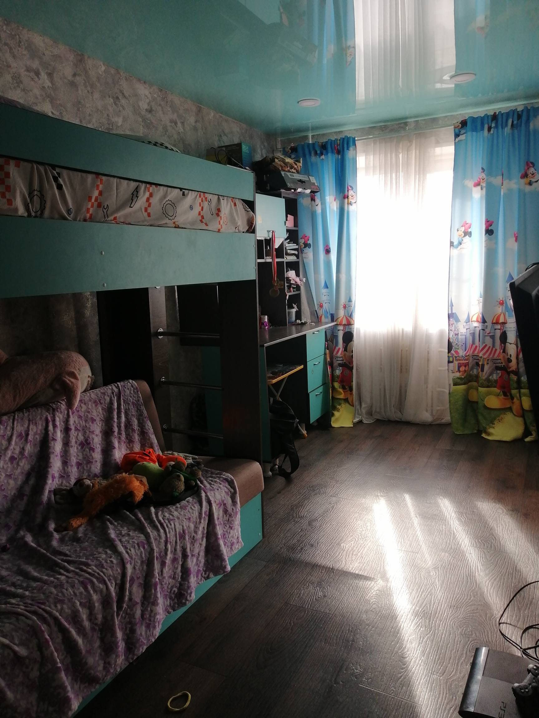 Из мебели остается кухонный гарнитур, встроенный шкаф-купе в детской.
