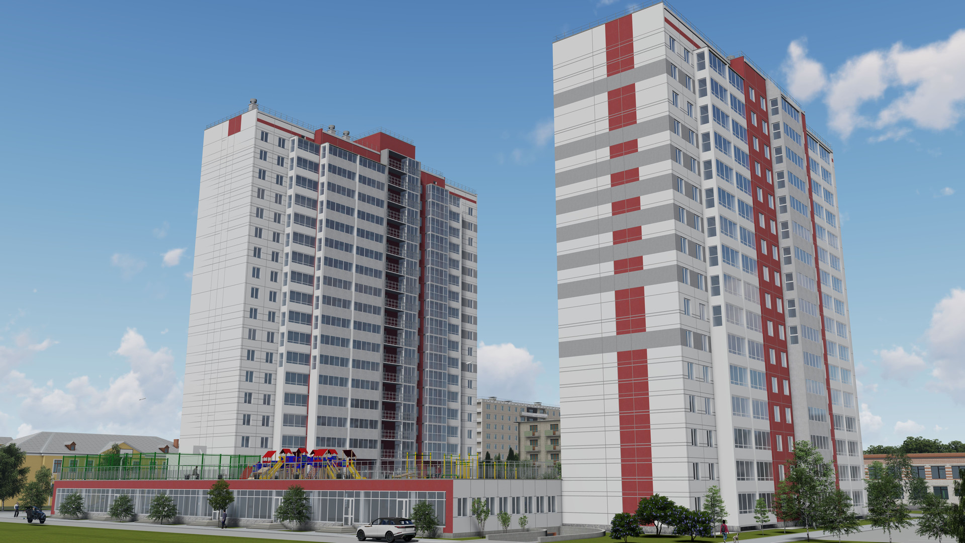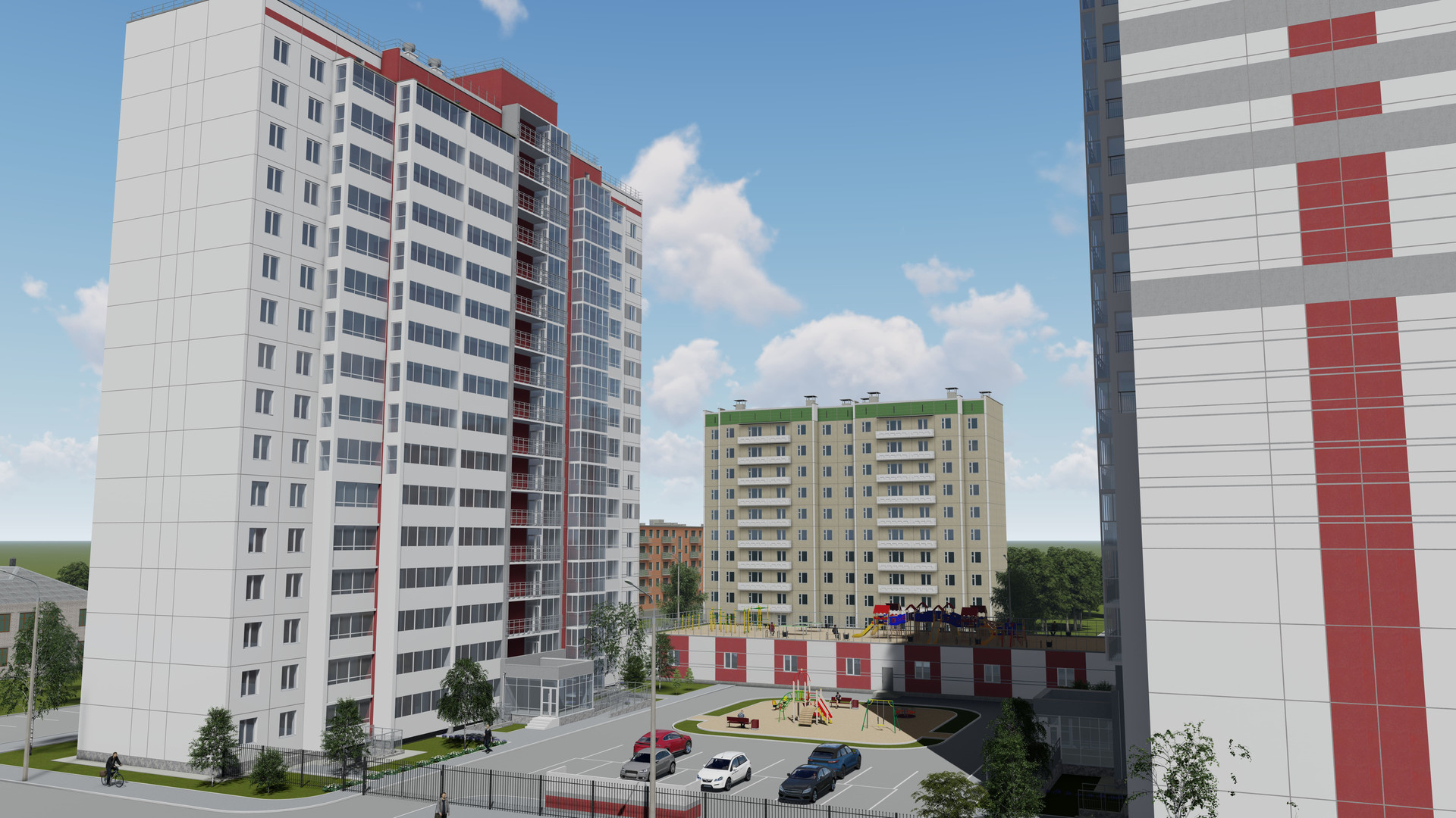 Удобное социальное местоположение комплекса, в шаговой доступности остановки общественного транспорта, садики, школа.