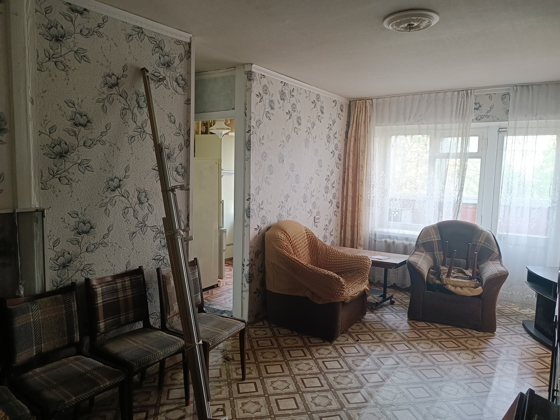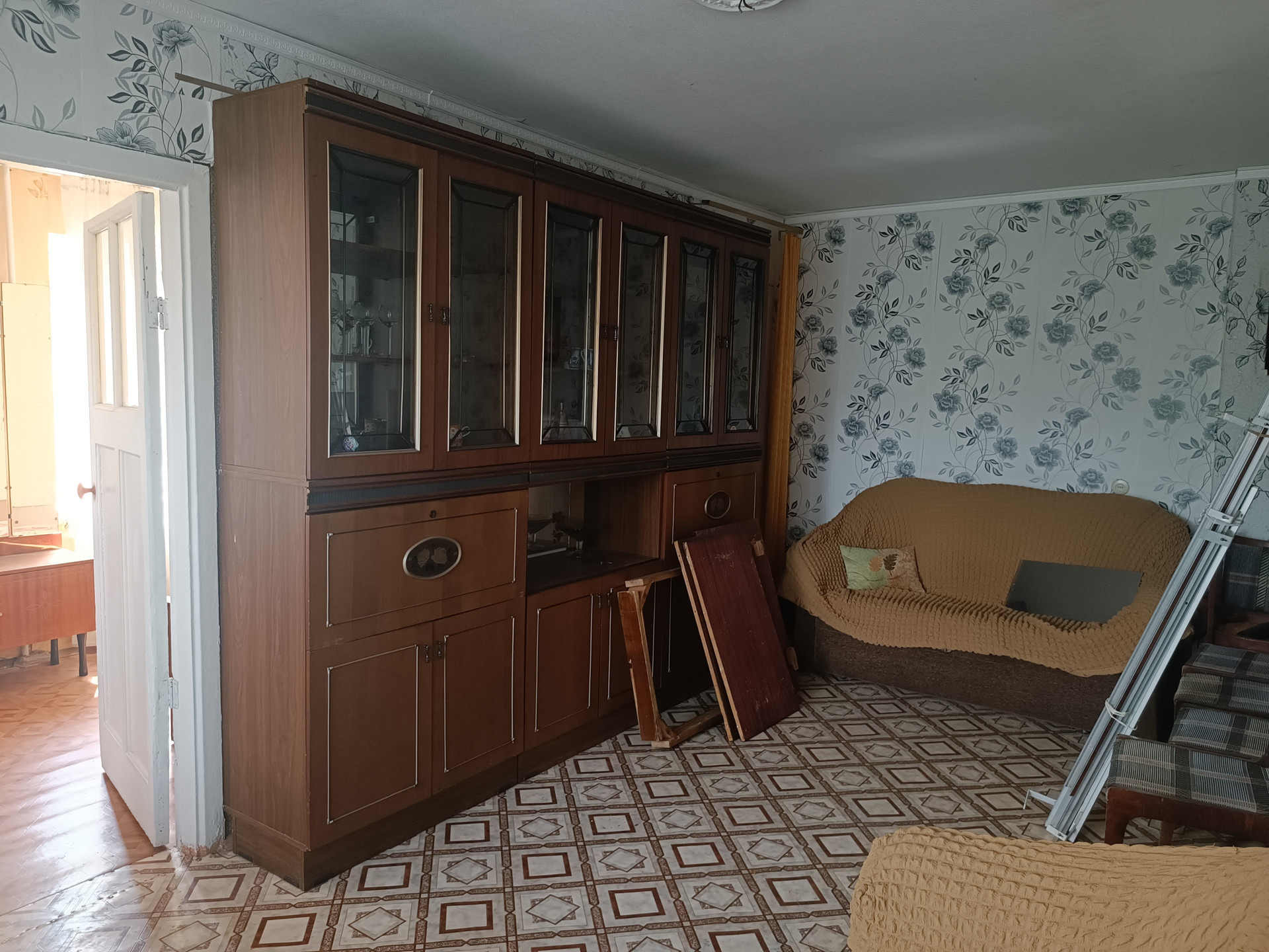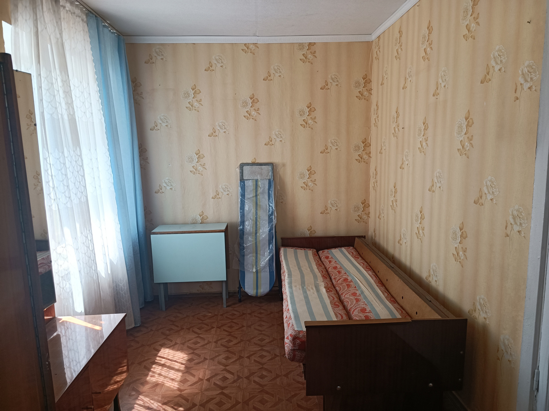 Общая площадь 45 кв.м.  Хрущевка. Комнаты смежные. С/узел совмещен. Большая кладовка. Очень светлая и тёплая квартира. Железная дверь. Состояние квартиры – бабушкин вариант. Без долгов, без обременений.